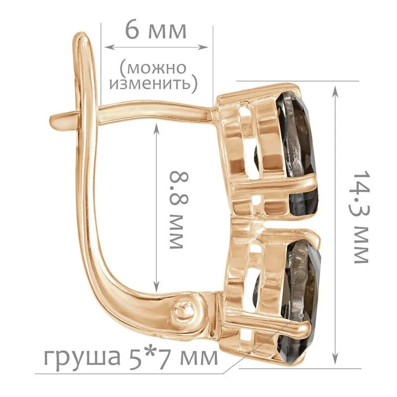 Серебряные серьги с натуральным раухтопазом - коллекция Дуэт / покрытие Розовое Золото.Средний вес украшения с камнями 2.94 гр.Месторождение(я): Раухтопаз (Дымчатый кварц) (м-ие Додо ХМАО, Россия).Ювелирные вставки:Раухтопаз (Натуральный) груша 5*7 мм., средний вес: 0.63 карат.Все изделия собственного производства и имеют гарантию 12 месяцев. Арт. 8686PG . Раухтопаз – это разновидность кварца. Ранее он использовался в ювелирных украшениях, при вышивке картин, для магических ритуалов. Его влияние на владельца сразу становится заметно — человек успокаивается и становится рассудительным, легче выходит из депрессивных состояний. Часто использовался в приворотах, заговорах или для связи с миром духов.