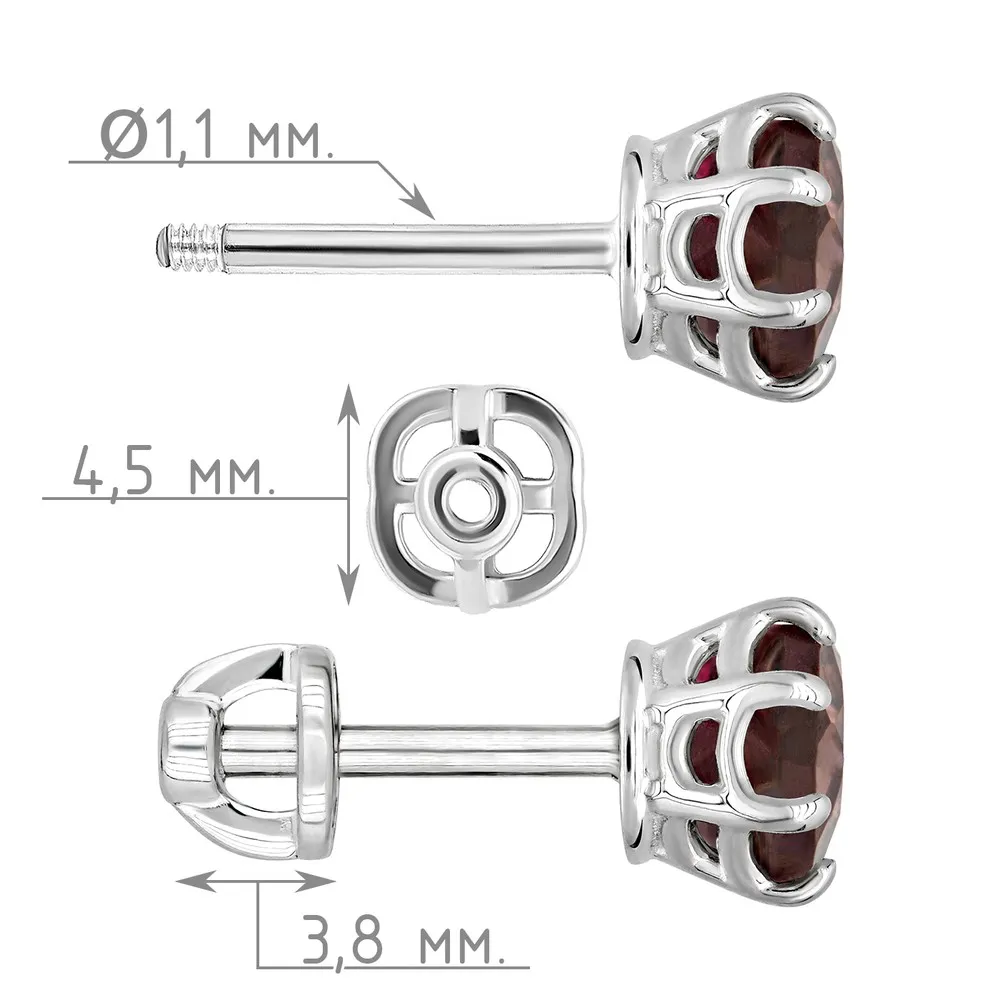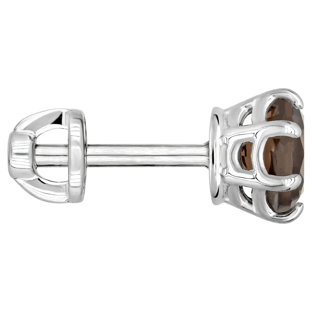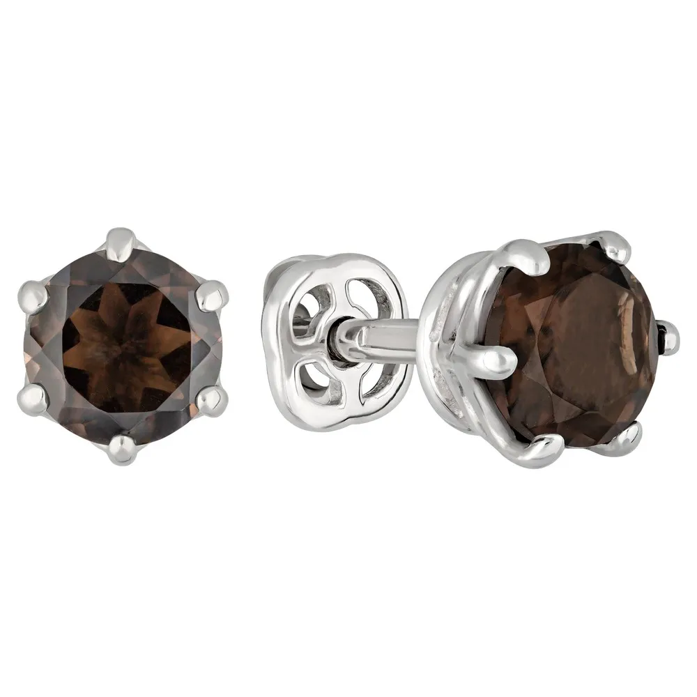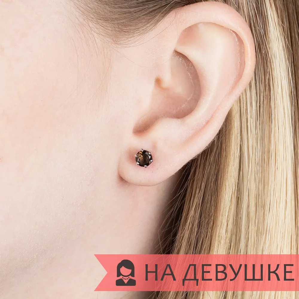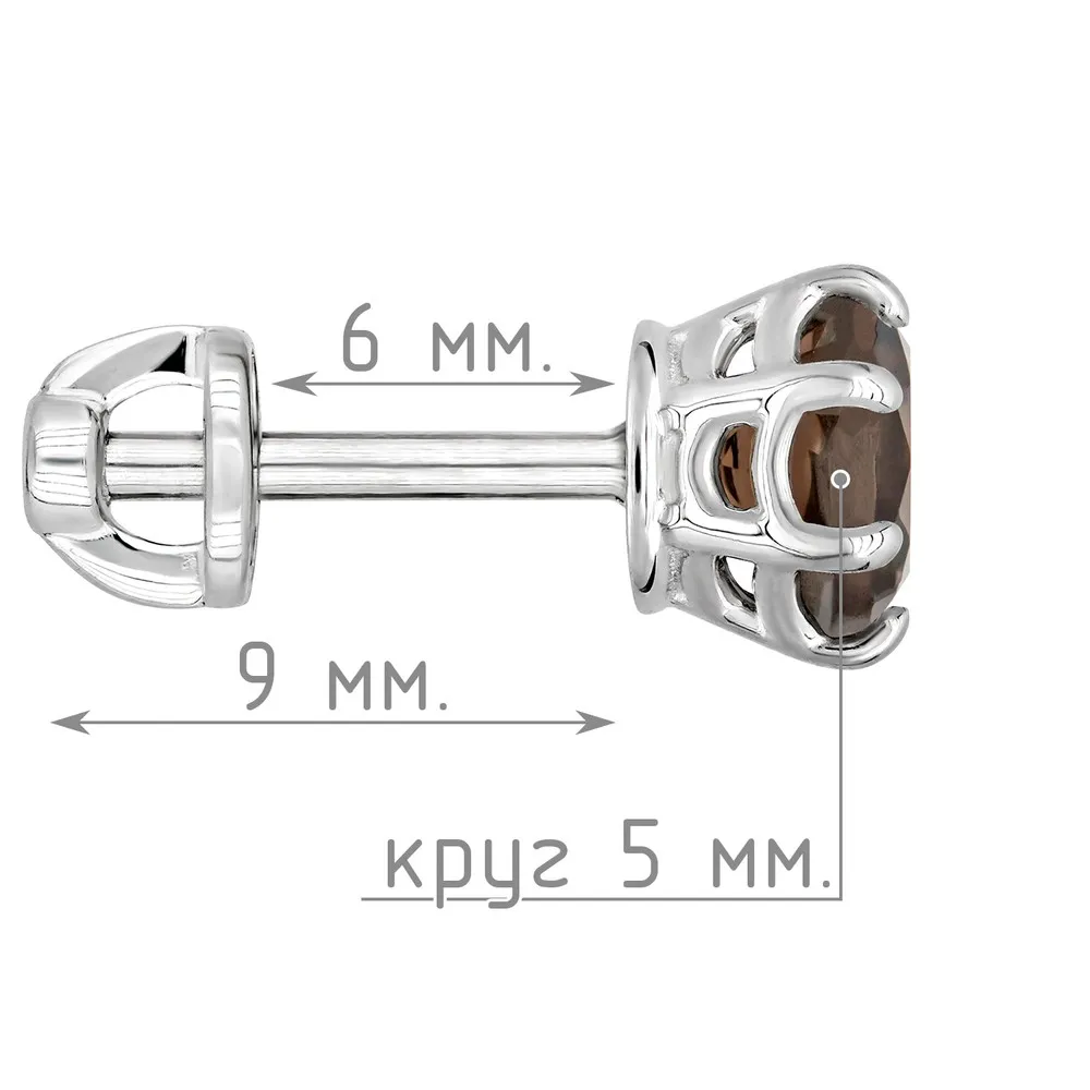 Серебряные серьги гвоздики (пусеты) с натуральным раухтопазом 5 мм. / Без покрытия.