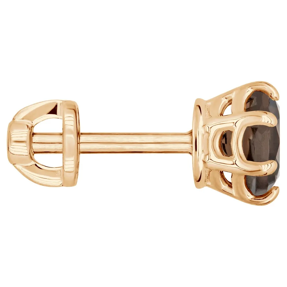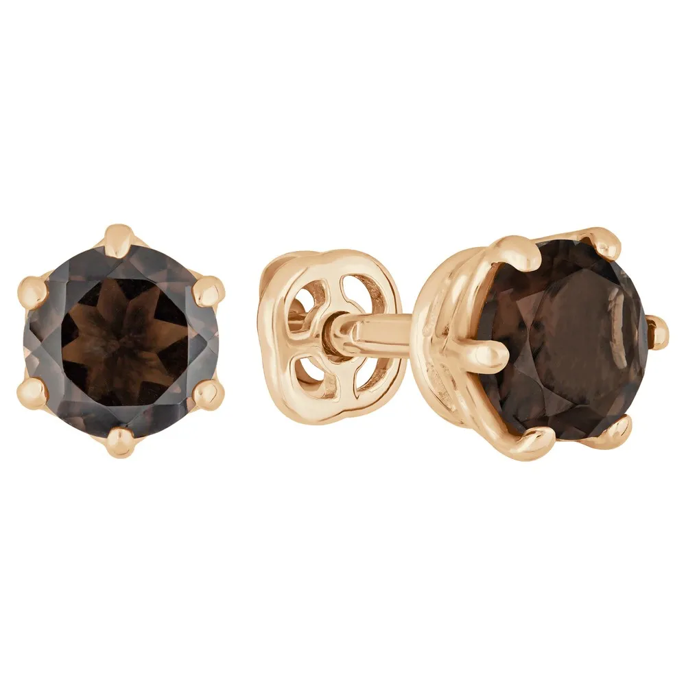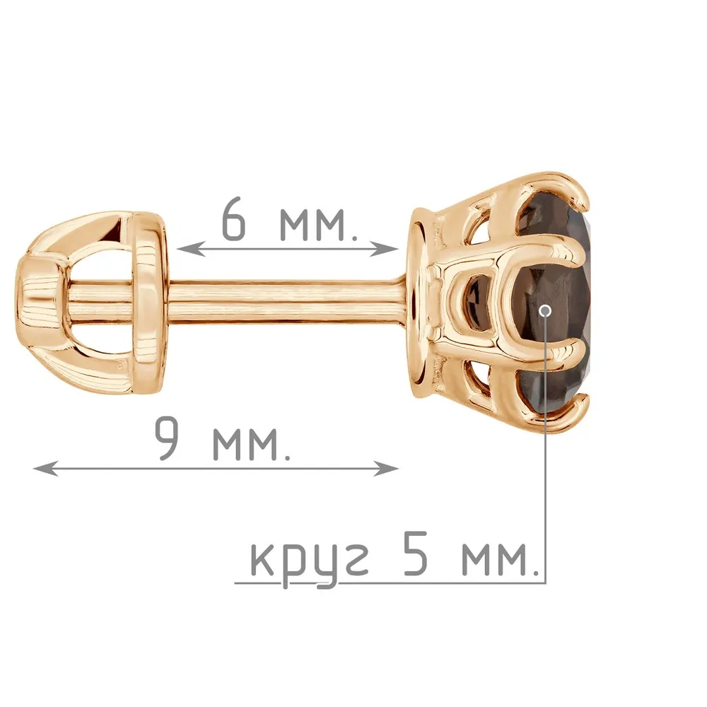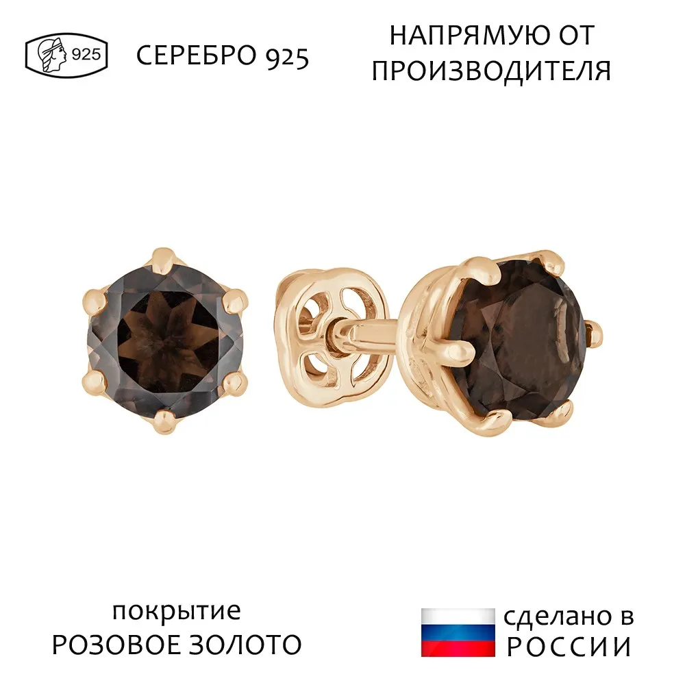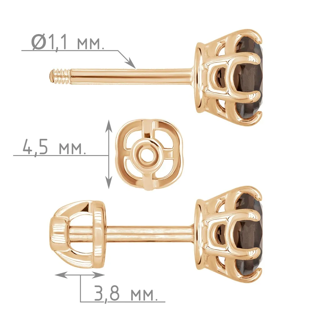Серебряные серьги гвоздики (пусеты) с натуральным раухтопазом 5 мм. / Розовое Золото.