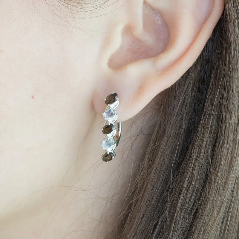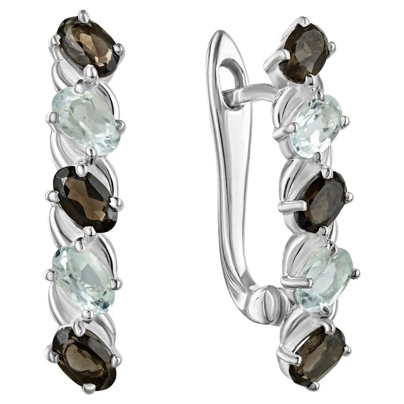 Серебряные серьги с натуральными камнями раухтопаз и топаз - коллекция Колосок / Без покрытия