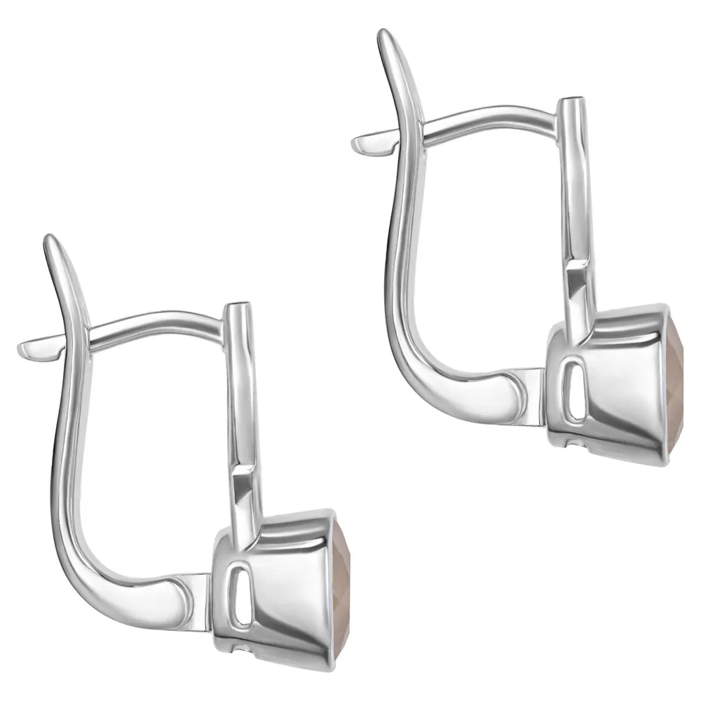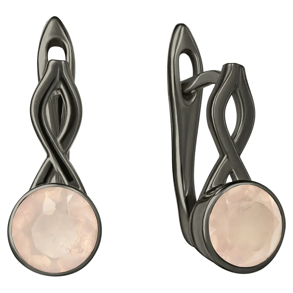 Серебряные серьги с натуральным розовым кварцем - коллекция Нимфа, покрытие Черный Родий.