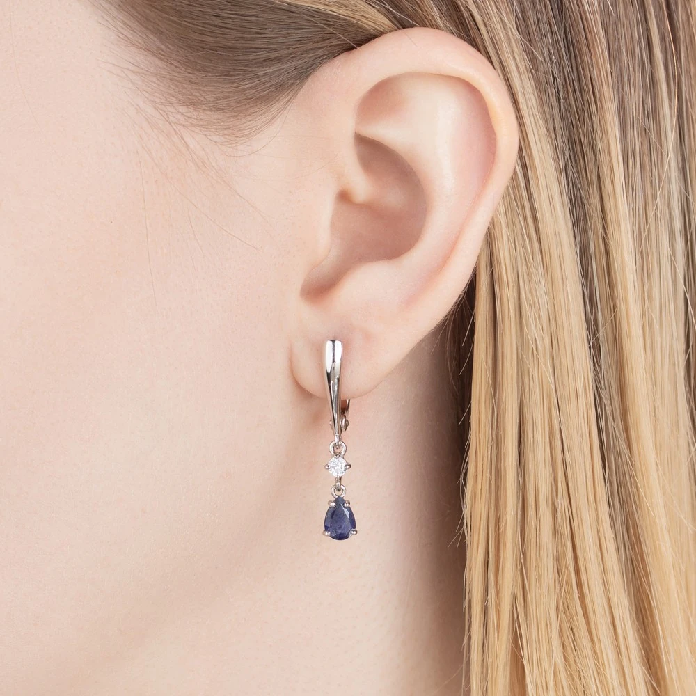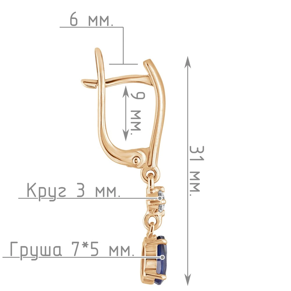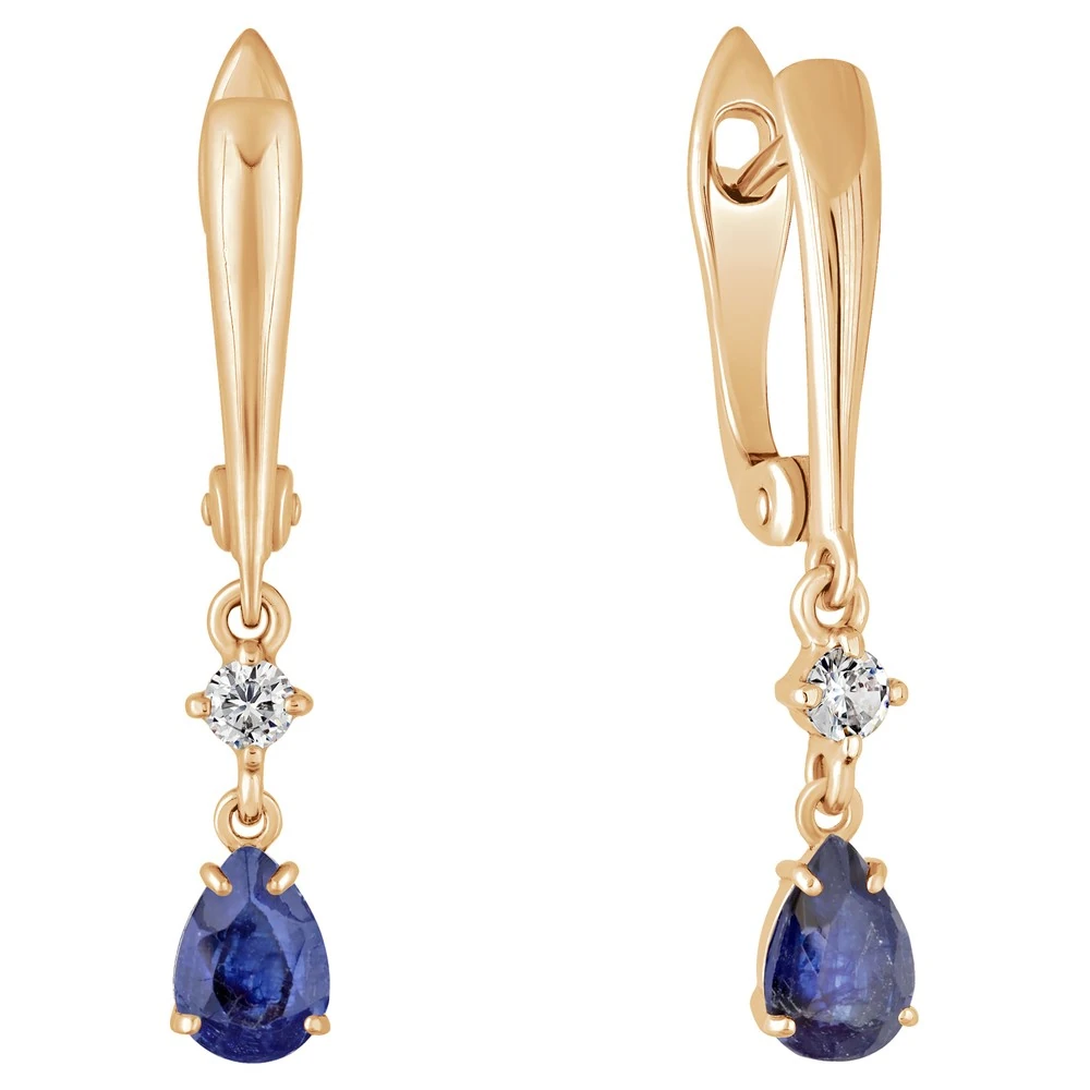 Серебряные серьги с натуральным сапфиром - коллекция Алсу (малая) / Розовое Золото.