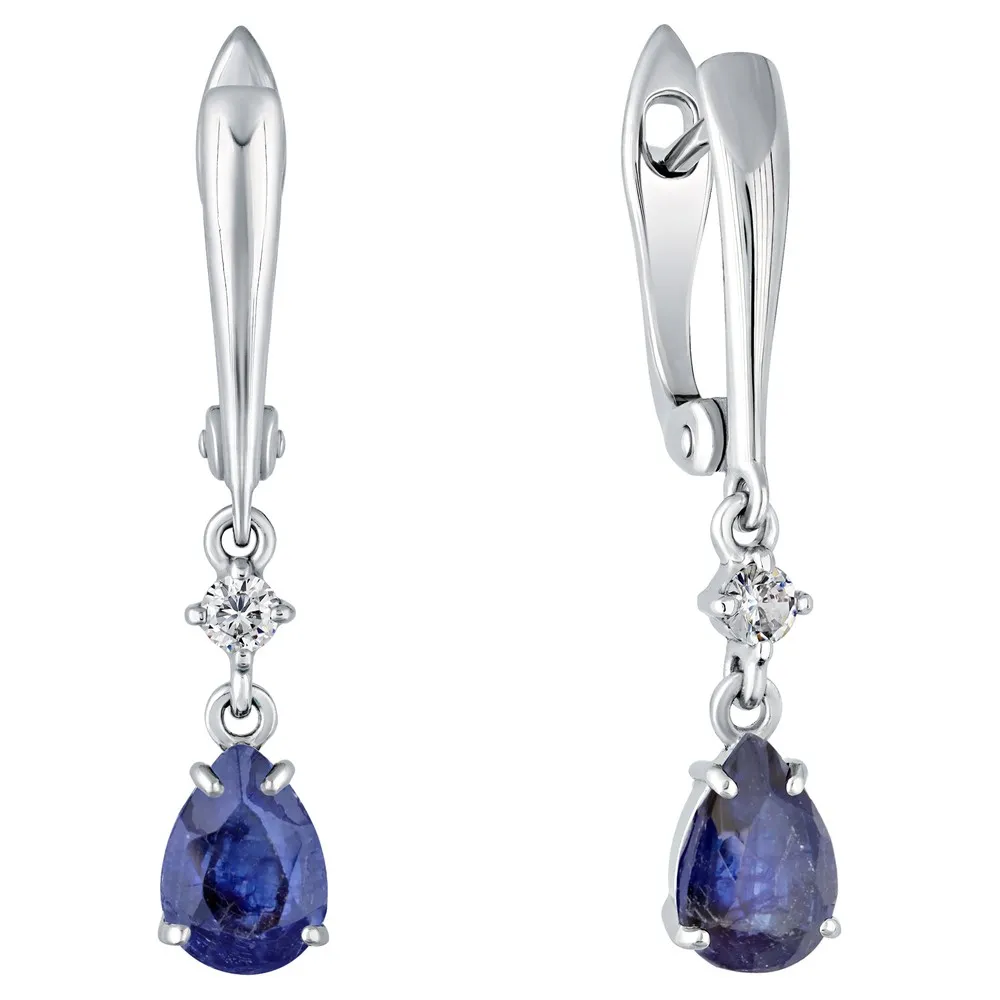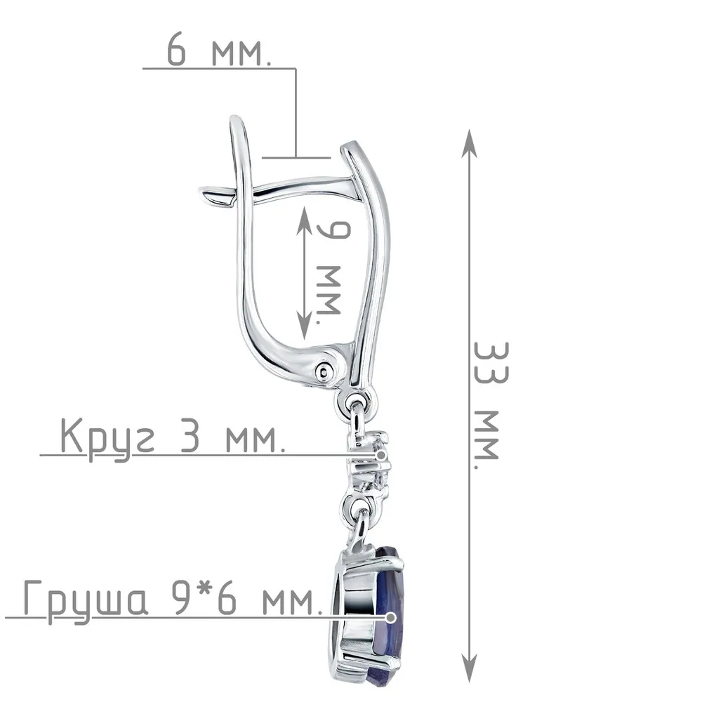 Серебряные серьги с натуральным сапфиром - коллекция Алсу (большая) / Чистое Серебро.