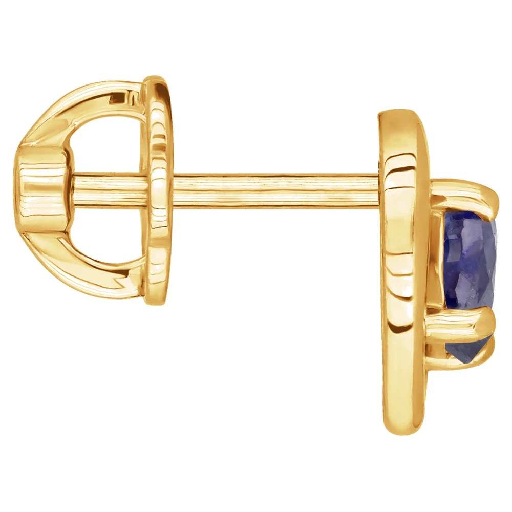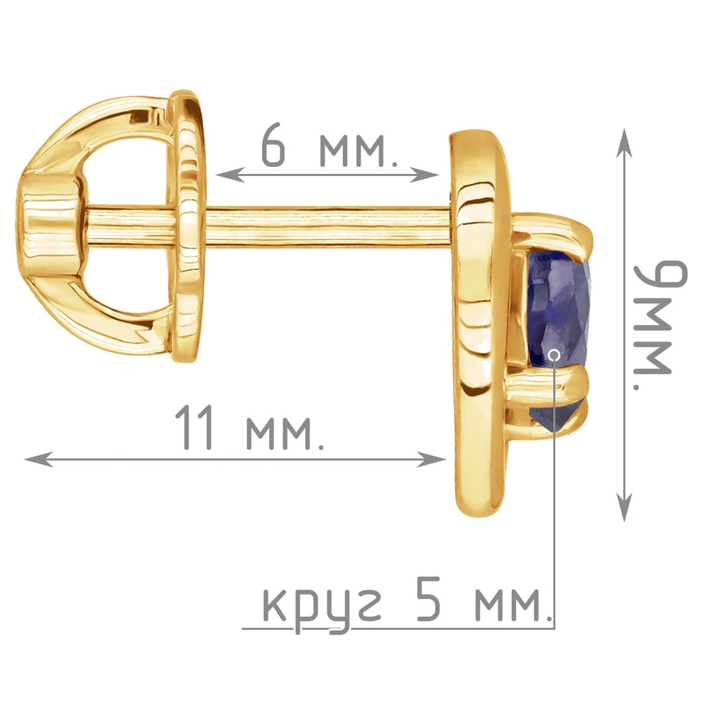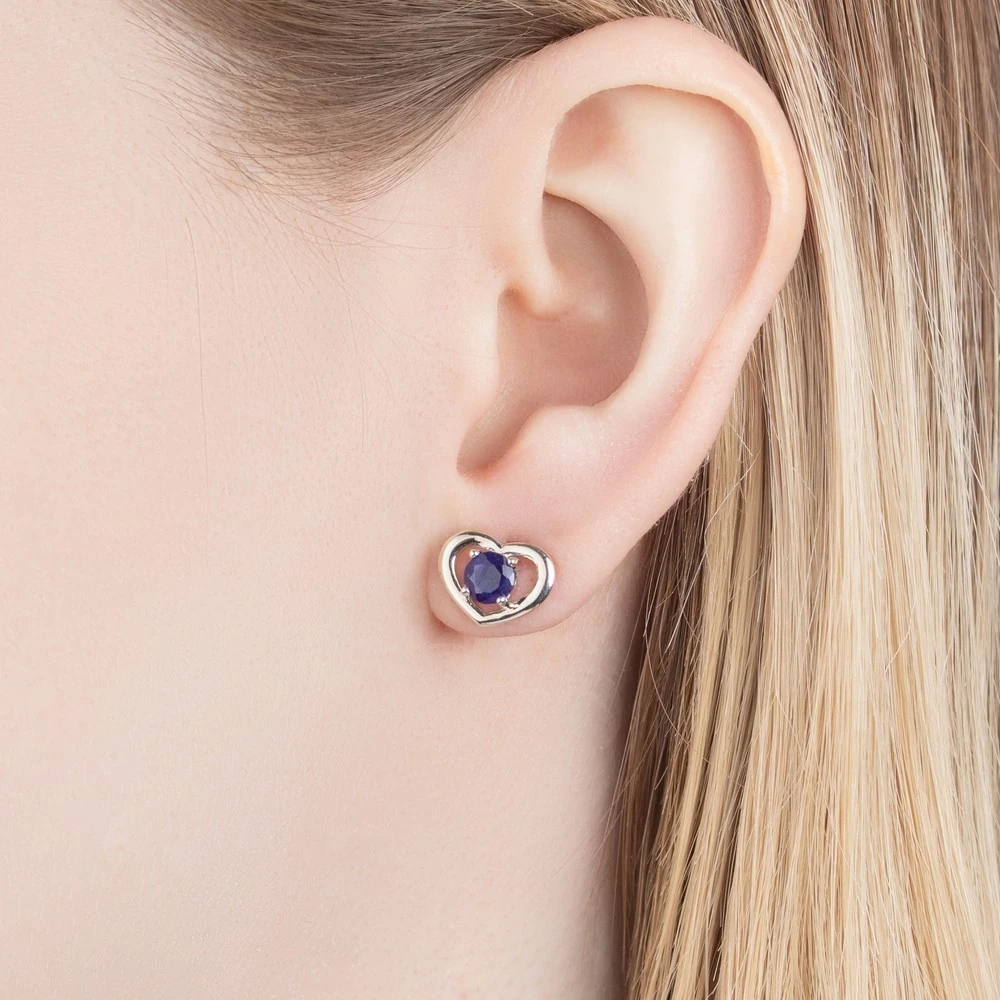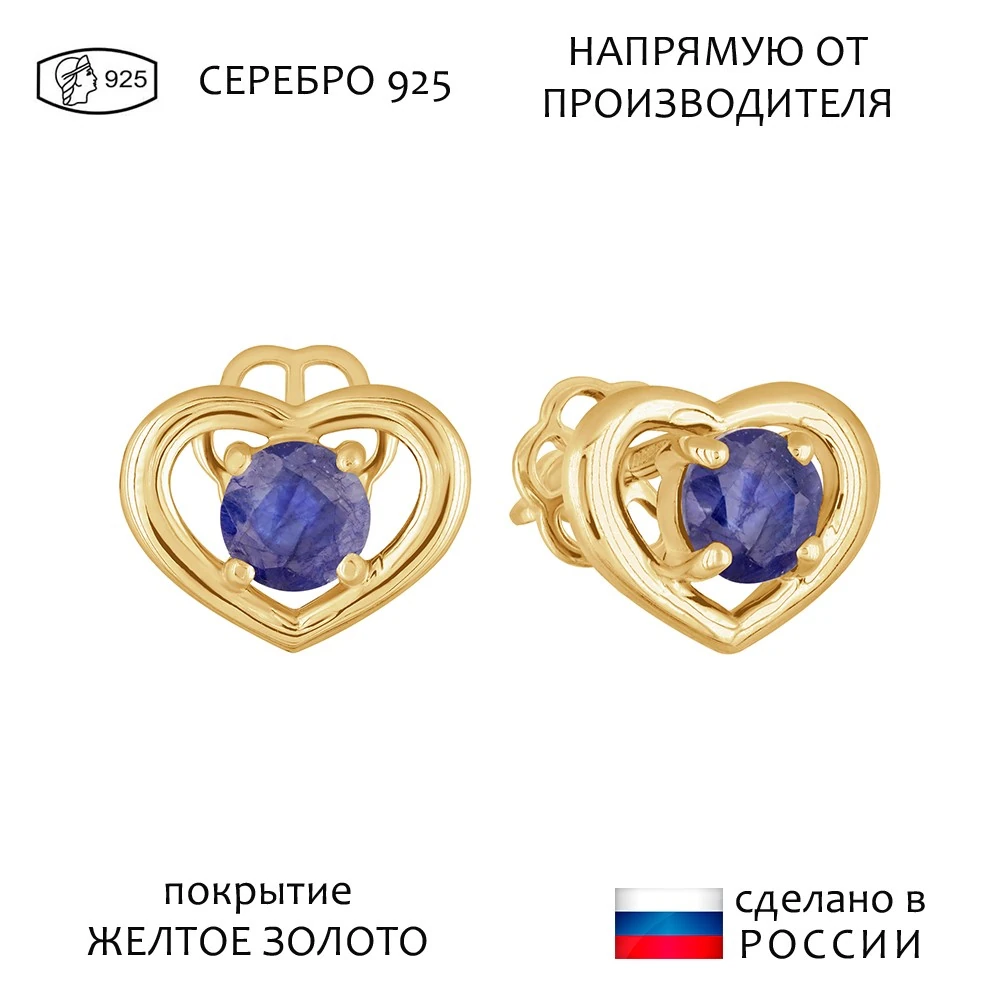 Серебряные серьги гвоздики (пусеты) с натуральным сапфиром - Сердце / покрытие Желтое Золото.