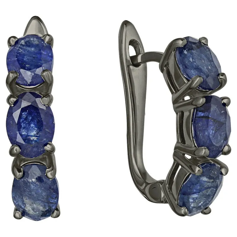 Серебряные серьги с натуральным сапфиром - коллекция Муза, покрытие Черный Родий.
