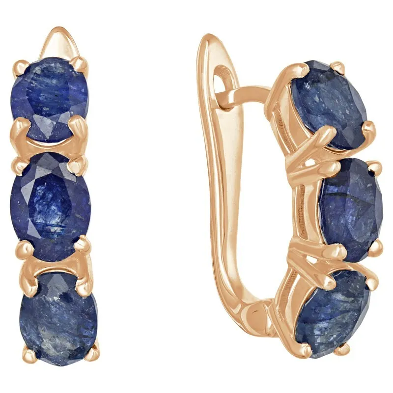 Серебряные серьги с натуральным сапфиром - коллекция Муза. Серебряные серьги 925 пробы с покрытием розовое золото. Цвет покрытия соответствует швейцарскому цветовому стандарту NIHS -4N и цвету розового золота 585 в России. На последней фотографии мы разместили сравнительную фотографию 3 цвета золотого покрытия. Помимо предания золотого цвета Вашему изделию, тонкий слой золота защищает от окисления. Для более стойкого эффекта золочения и долговечности покрытия мы дополнительно наносим подслой палладия (Pd). Средний вес изделия с камнями 2.5 гр. Месторождение(я): Сапфир (Мадагаскар) Сапфир (Натуральный) овал 5*7 мм., средний вес: 1,16 карат. Размер лицевой части: 5*21 мм. Все изделия собственного производства. Гарантия 12 месяцев.Арт. 7921. Сапфир – это разновидность корунда. Камням различных оттенков приписывались разные свойства. Синие чаще всего ассоциировались с властью. Особенно ценятся звёздчатые сапфиры. Данный минерал часто именуют камнем небес и соотносят с божественным даром. Им дано усмирять человеческие страсти и укреплять волю.
