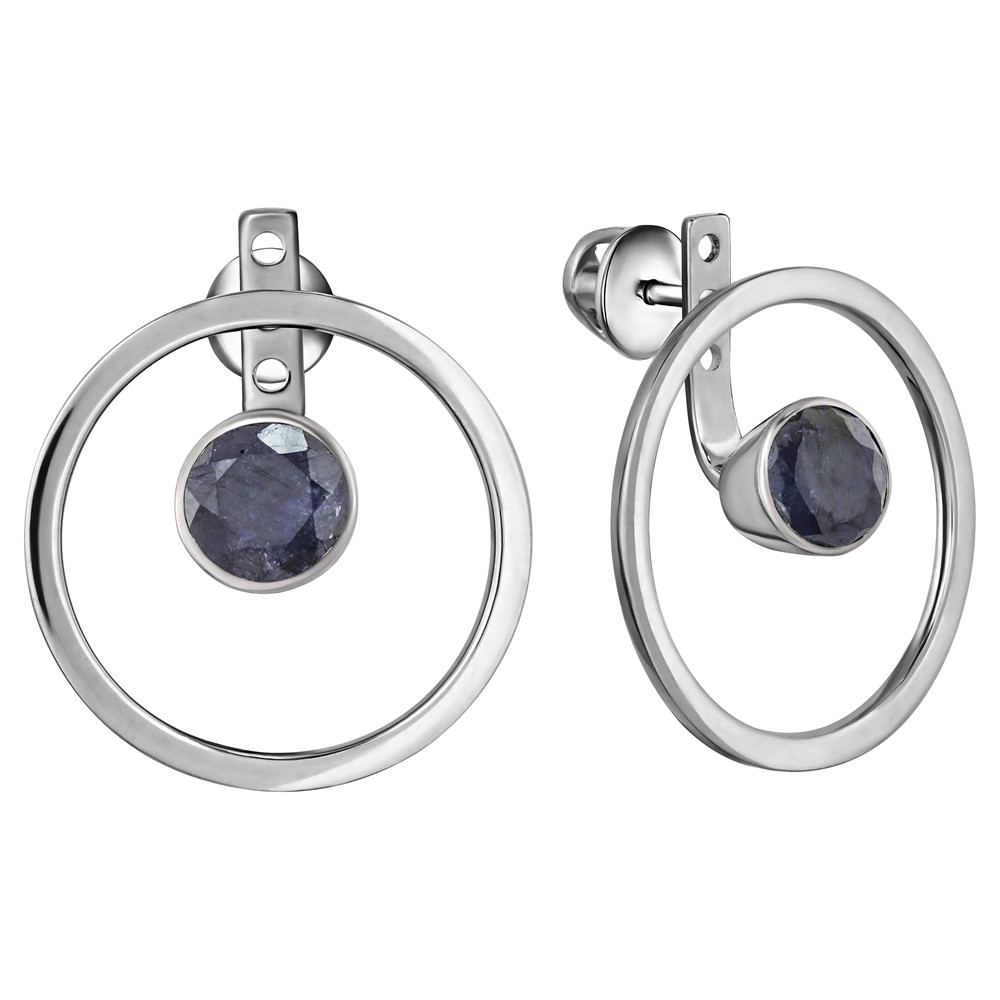 Серебряные серьги с натуральным сапфиром - коллекция Аура, покрытие Палладий.