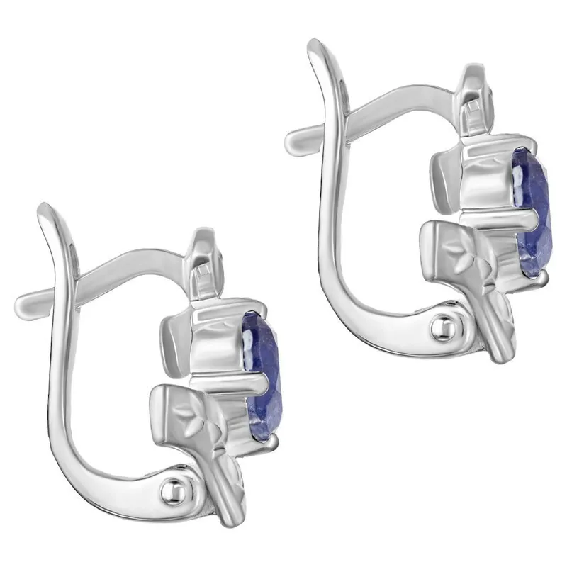 Серебряные серьги с натуральным сапфиром - коллекция Тея / покрытие Белый Родий