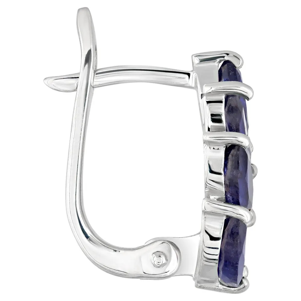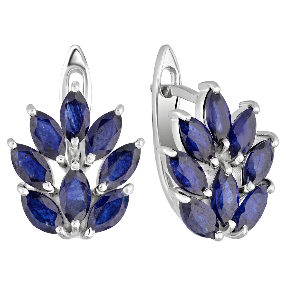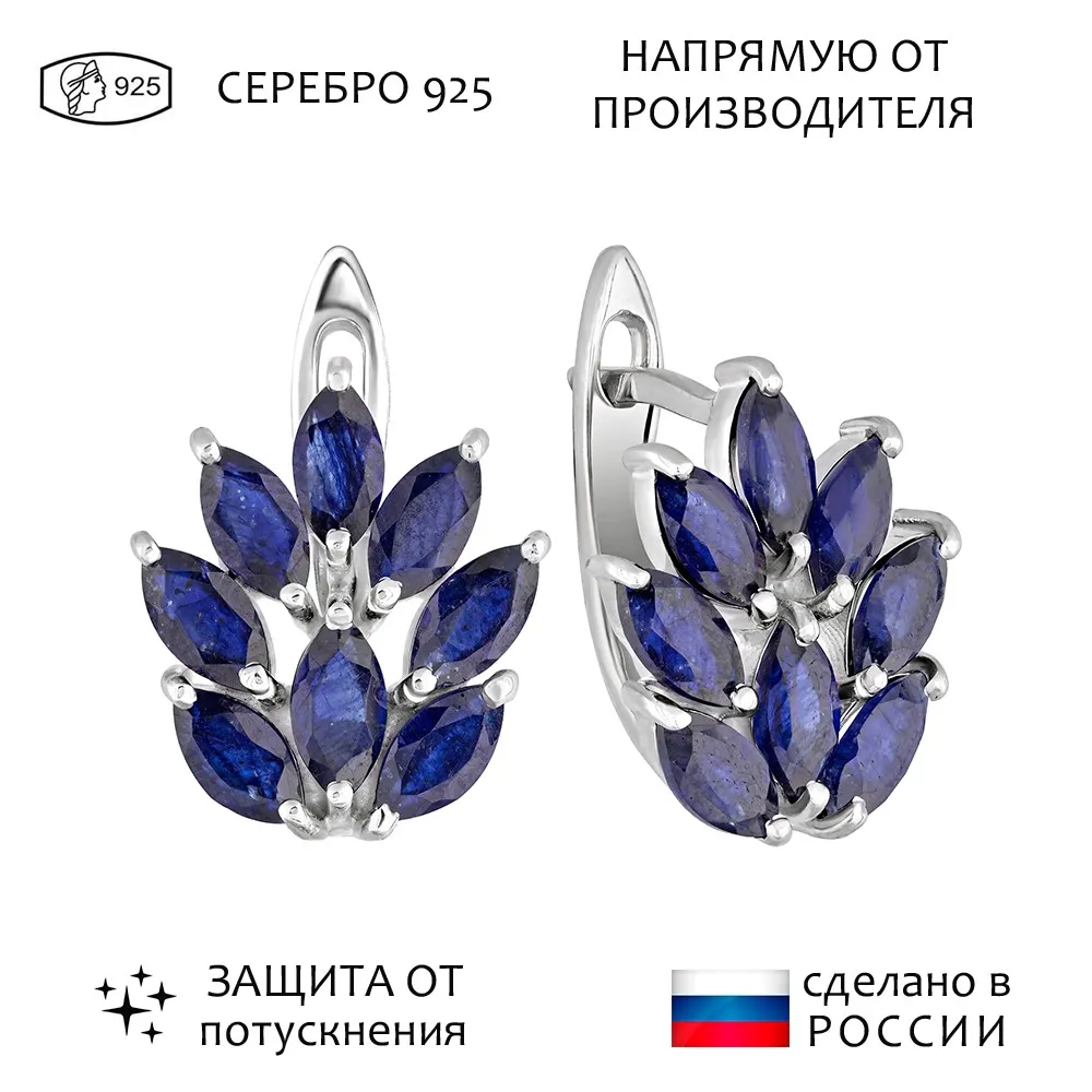 Серебряные серьги с натуральным сапфиром - коллекция Искра / Без покрытия