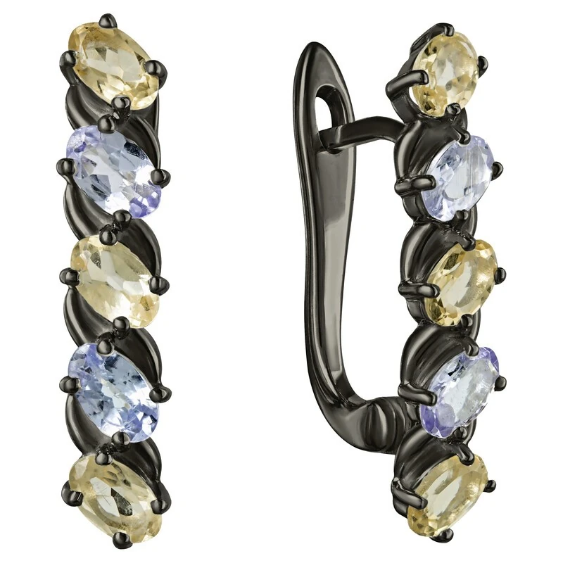 Серебряные серьги с натуральными камнями цитрин и танзанит - коллекция Колосок, покрытие Черный Родий. Средний вес украшения с камнями 4.3 гр. Месторождения: Цитрин (Урал, Россия) и Танзанит (провинция Аруша, Танзания) Цитрин (Натуральный) овал 3*5 мм., средний вес: 0.24 карат. Танзанит (Натуральный) овал 3*5 мм., средний вес: 0.24 карат. Все изделия собственного производства и имеют гарантию 12 месяцев, к каждому изделию прилагается паспорт. Арт. 8028BR