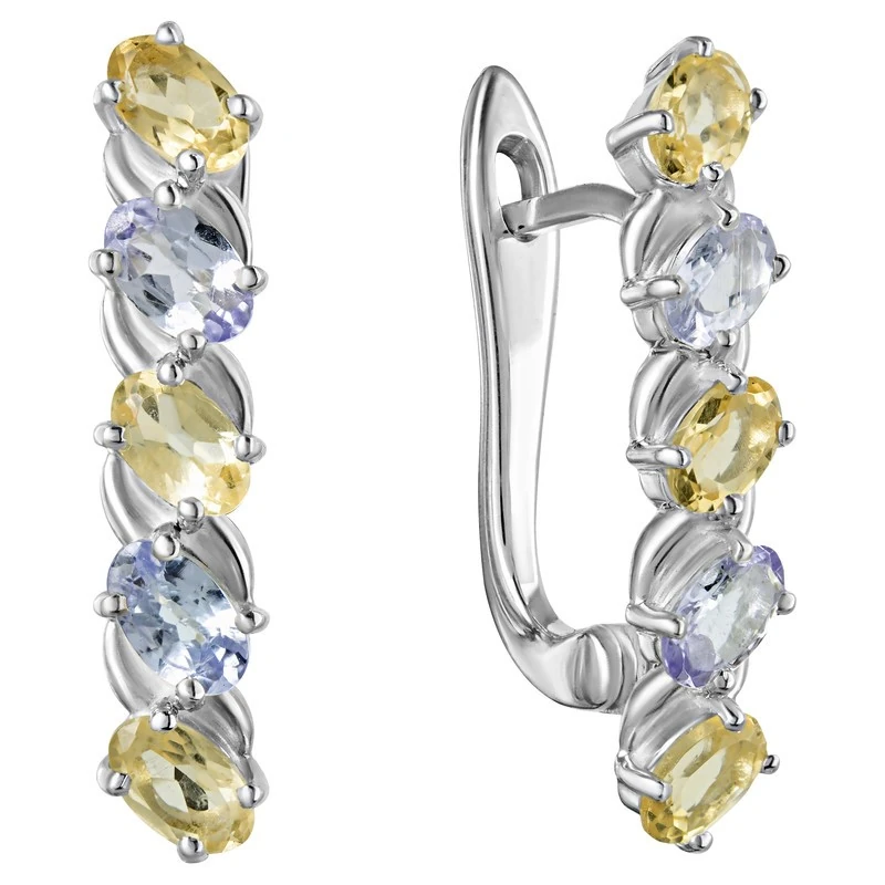 Серебряные серьги с натуральными камнями цитрин и танзанит - коллекция Колосок, без покрытия. Средний вес украшения с камнями 4.3 гр. Месторождения: Цитрин (Урал, Россия) и Танзанит (провинция Аруша, Танзания) Цитрин (Натуральный) овал 3*5 мм., средний вес: 0.24 карат. Танзанит (Натуральный) овал 3*5 мм., средний вес: 0.24 карат. Все изделия собственного производства и имеют гарантию 12 месяцев, к каждому изделию прилагается паспорт. Арт. 8028NP