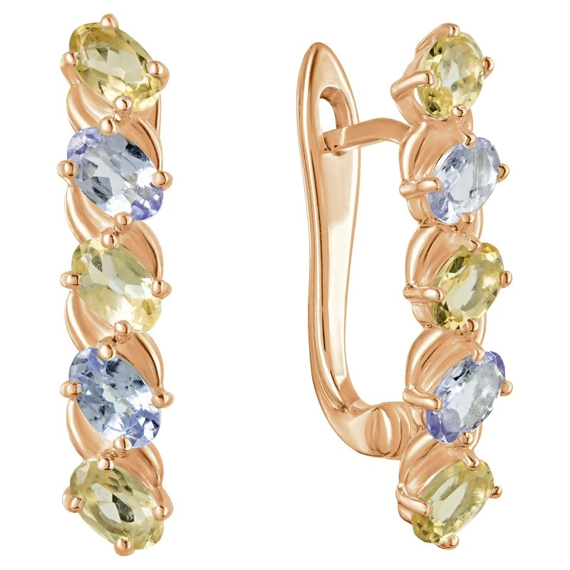 Серебряные серьги с натуральными камнями цитрин и танзанит - коллекция Колосок, покрытие Розовое Золото. Средний вес украшения с камнями 4.3 гр. Месторождения: Цитрин (Урал, Россия) и Танзанит (провинция Аруша, Танзания) Цитрин (Натуральный) овал 3*5 мм., средний вес: 0.24 карат. Танзанит (Натуральный) овал 3*5 мм., средний вес: 0.24 карат. Все изделия собственного производства и имеют гарантию 12 месяцев, к каждому изделию прилагается паспорт. Арт. 8028PG