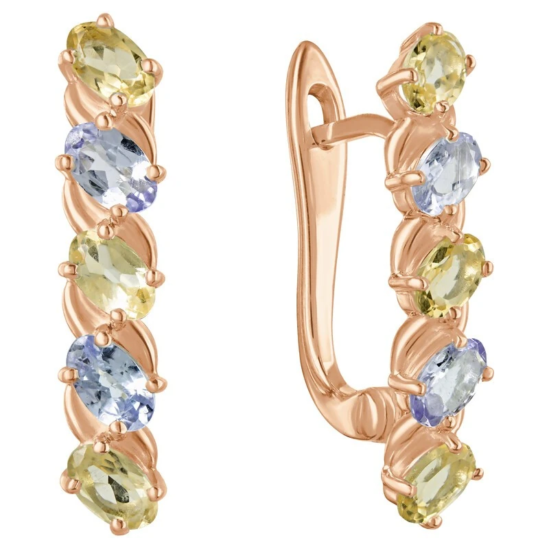 Серебряные серьги с натуральными камнями цитрин и танзанит - коллекция Колосок, покрытие Красное Золото. Средний вес украшения с камнями 4.3 гр. Месторождения: Цитрин (Урал, Россия) и Танзанит (провинция Аруша, Танзания) Цитрин (Натуральный) овал 3*5 мм., средний вес: 0.24 карат. Танзанит (Натуральный) овал 3*5 мм., средний вес: 0.24 карат. Все изделия собственного производства и имеют гарантию 12 месяцев, к каждому изделию прилагается паспорт. Арт. 8028RG