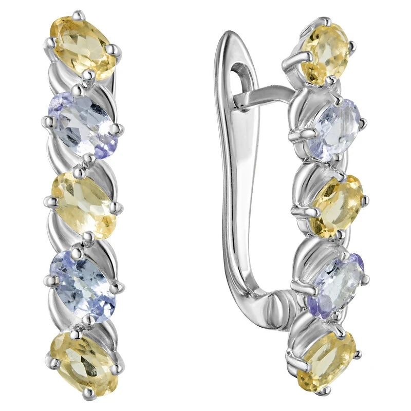 Серебряные серьги с натуральными камнями цитрин и танзанит - коллекция Колосок, покрытие Белый Родий. Средний вес украшения с камнями 4.3 гр. Месторождения: Цитрин (Урал, Россия) и Танзанит (провинция Аруша, Танзания) Цитрин (Натуральный) овал 3*5 мм., средний вес: 0.24 карат. Танзанит (Натуральный) овал 3*5 мм., средний вес: 0.24 карат. Все изделия собственного производства и имеют гарантию 12 месяцев, к каждому изделию прилагается паспорт. Арт. 8028WR