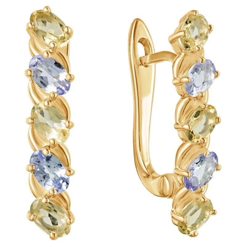 Серебряные серьги с натуральными камнями цитрин и танзанит - коллекция Колосок, покрытие Желтое Золото. Средний вес украшения с камнями 4.3 гр. Месторождения: Цитрин (Урал, Россия) и Танзанит (провинция Аруша, Танзания) Цитрин (Натуральный) овал 3*5 мм., средний вес: 0.24 карат. Танзанит (Натуральный) овал 3*5 мм., средний вес: 0.24 карат. Все изделия собственного производства и имеют гарантию 12 месяцев, к каждому изделию прилагается паспорт. Арт. 8028YG