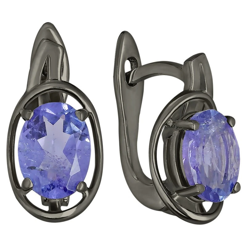 Серебряные серьги с натуральным танзанитом - коллекция Фрейя, покрытие Черный Родий. Средний вес украшения с камнем составляет 3.48 гр. Месторождение(я): Танзанит (провинция Аруша, Танзания).