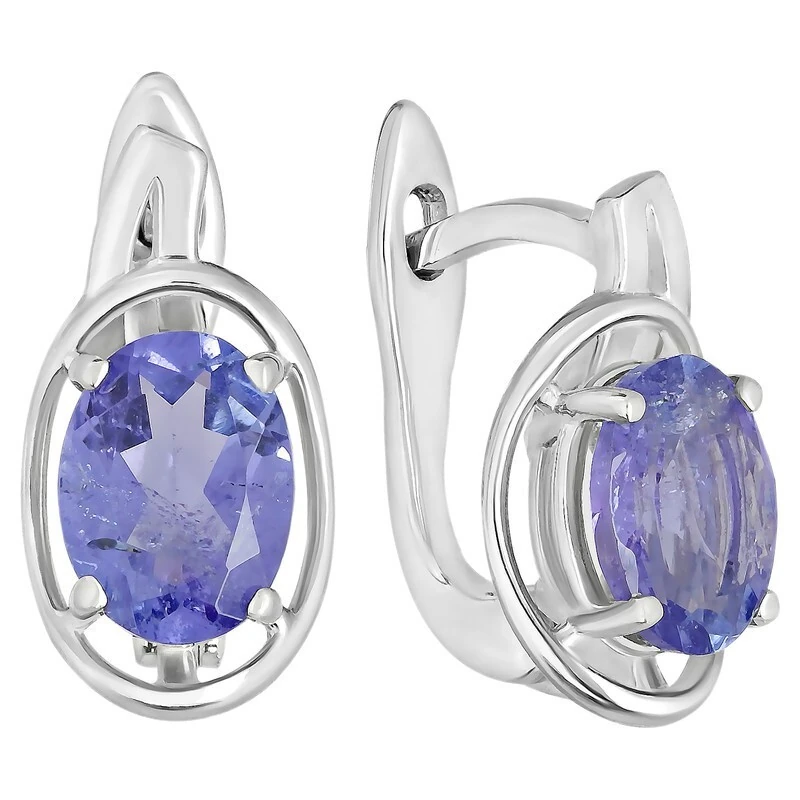 Серебряные серьги с натуральным танзанитом - коллекция Фрейя / Без покрытия
