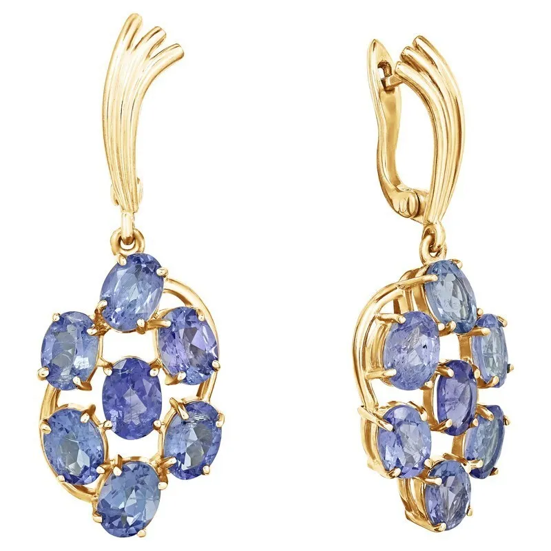 Серебряные серьги с натуральным танзанитом - коллекция Аэлита. Серебряные серьги 925 пробы с покрытием желтое золото. Цвет покрытия соответствует швейцарскому цветовому стандарту NIHS -FF24ct и цвету чистого золото 999.99. На последней фотографии мы разместили сравнительную фотографию 3 цвета золотого покрытия. Помимо предания золотого цвета Вашему изделию, тонкий слой золота защищает от окисления. Для более стойкого эффекта золочения и долговечности покрытия мы дополнительно наносим подслой палладия (Pd). Средний вес изделия с камнями 9.86 гр. Месторождение: Танзанит (провинция Аруша, Танзания). Танзанит (Натуральный) овал 5*7 мм., средний вес: 0.89 карат. Все изделия собственного производства. Гарантия 12 месяцев.Арт. 7831. Танзанит – интересный камень, который нашли совершенно случайно и некоторое время относили к сапфирам, пока наконец многочисленные исследования не подтвердили, что это иной минерал. Глубокий синий цвет способен восстанавливать зрение, успокаивать нервную систему. Минералу приписывалась способность приносить богатство и успех в карьере.