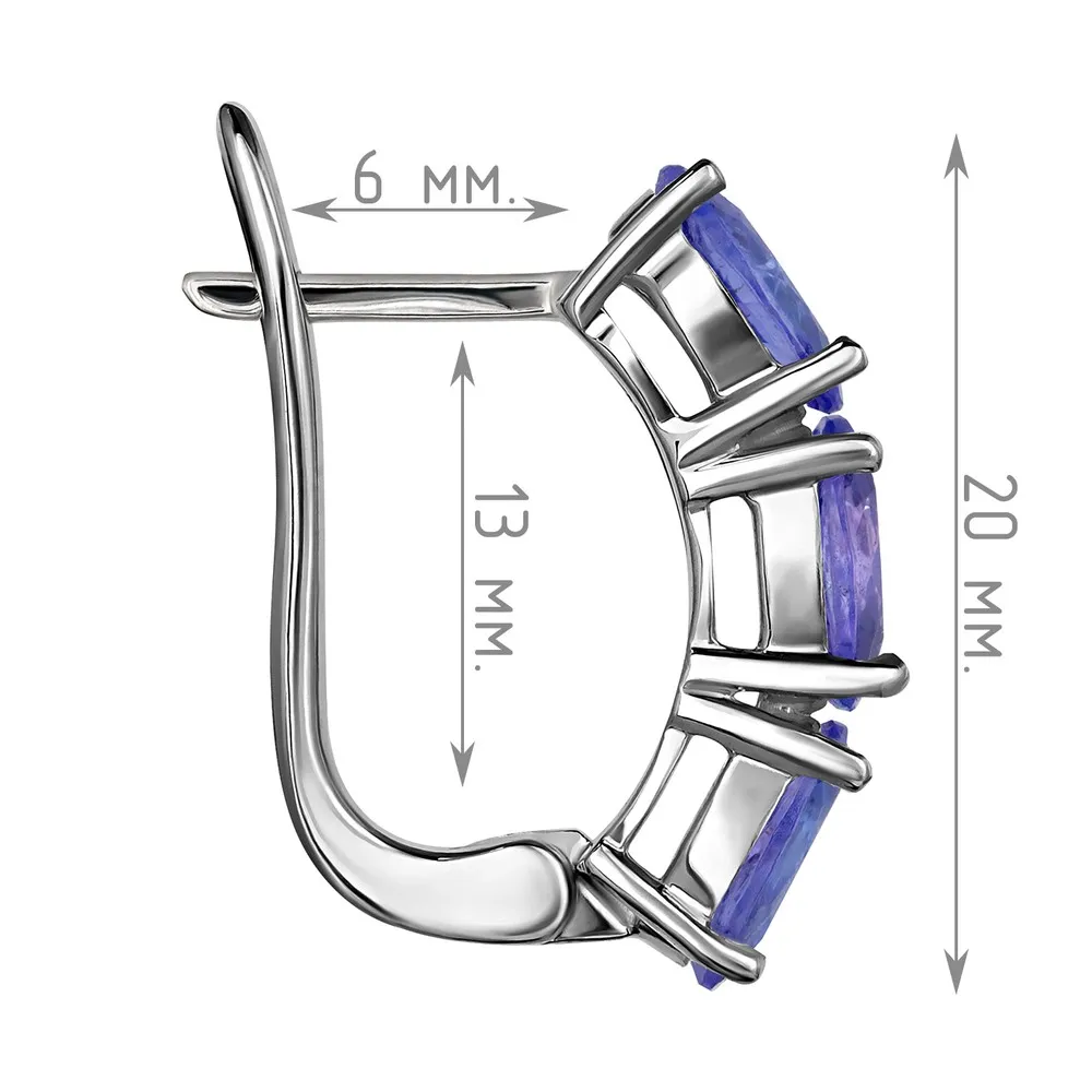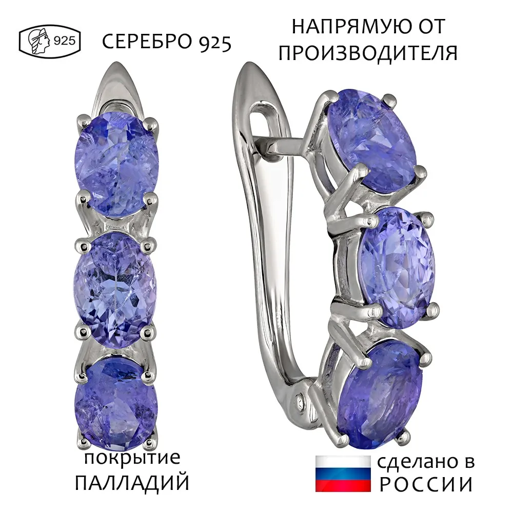Серебряные серьги с натуральным танзанитом - коллекция Муза / Палладий.