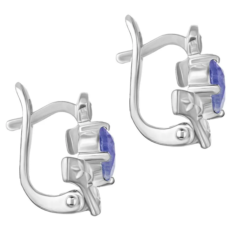 Серебряные серьги с натуральным танзанитом - коллекция Тея. Средний вес изделия с камнями 3.37 гр. Месторождение: Танзанит (провинция Аруша, Танзания) Танзанит (Натуральный) овал 5*7 мм., средний вес: 0.89 карат. Все изделия собственного производства. Гарантия 12 месяцев.Арт. 8124. Танзанит – интересный камень, который нашли совершенно случайно и некоторое время относили к сапфирам, пока наконец многочисленные исследования не подтвердили, что это иной минерал. Глубокий синий цвет способен восстанавливать зрение, успокаивать нервную систему. Минералу приписывалась способность приносить богатство и успех в карьере.