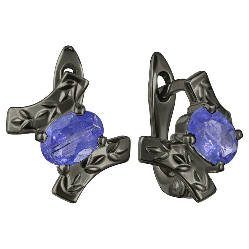 Серебряные серьги с натуральным танзанитом - коллекция Тея, покрытие Черный Родий.
