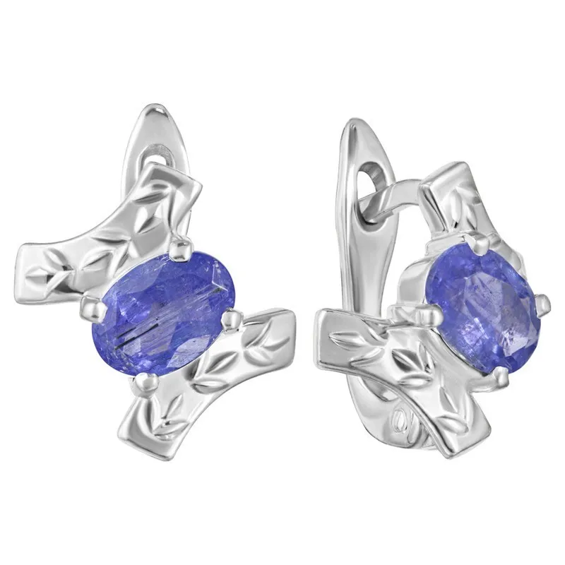 Серебряные серьги с натуральным танзанитом - коллекция Тея / Без покрытия