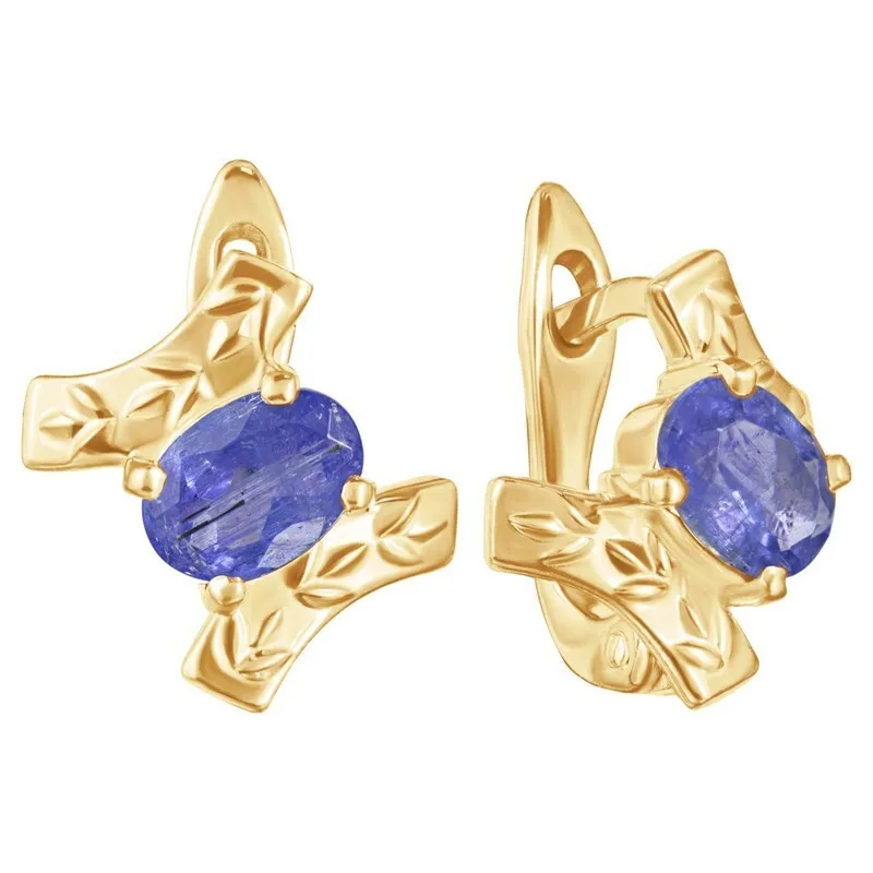 Серебряные серьги с натуральным танзанитом - коллекция Тея. Серебряные серьги 925 пробы с покрытием желтое золото. Цвет покрытия соответствует швейцарскому цветовому стандарту NIHS -FF24ct и цвету чистого золото 999.99. На последней фотографии мы разместили сравнительную фотографию 3 цвета золотого покрытия. Помимо предания золотого цвета Вашему изделию, тонкий слой золота защищает от окисления. Для более стойкого эффекта золочения и долговечности покрытия мы дополнительно наносим подслой палладия (Pd). Средний вес изделия с камнями 3.37 гр. Месторождение: Танзанит (провинция Аруша, Танзания) Танзанит (Натуральный) овал 5*7 мм., средний вес: 0.89 карат. Все изделия собственного производства. Гарантия 12 месяцев.Арт. 8124. Танзанит – интересный камень, который нашли совершенно случайно и некоторое время относили к сапфирам, пока наконец многочисленные исследования не подтвердили, что это иной минерал. Глубокий синий цвет способен восстанавливать зрение, успокаивать нервную систему. Минералу приписывалась способность приносить богатство и успех в карьере.