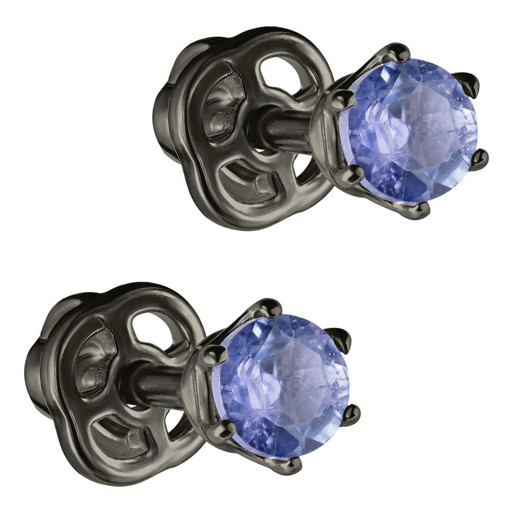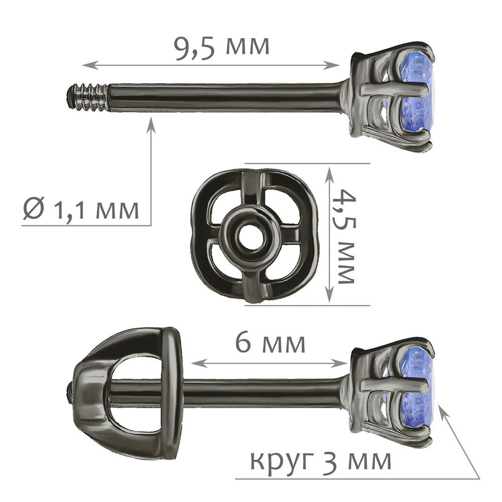 Серебряные серьги гвоздики (пусеты) с натуральным танзанитом, покрытие Черный Родий. Средний вес украшения с камнями 0.6 гр. Месторождение: Танзанит (провинция Аруша, Танзания)]; Танзанит (Натуральный) круг 3 мм., средний вес: 0.14 карат. Все изделия собственного производства и имеют гарантию 12 месяцев, к каждому изделию прилагается паспорт. Арт. 8320BR. Танзанит – интересный камень, который нашли совершенно случайно и некоторое время относили к сапфирам, пока наконец многочисленные исследования не подтвердили, что это иной минерал. Глубокий синий цвет способен восстанавливать зрение, успокаивать нервную систему. Минералу приписывалась способность приносить богатство и успех в карьере.