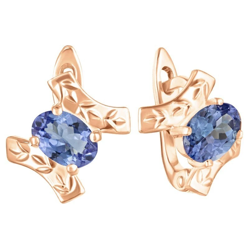 Серебряные серьги с натуральным танзанитом (1 класс) - коллекция Тея / покрытие Красное Золото