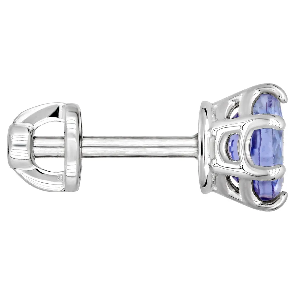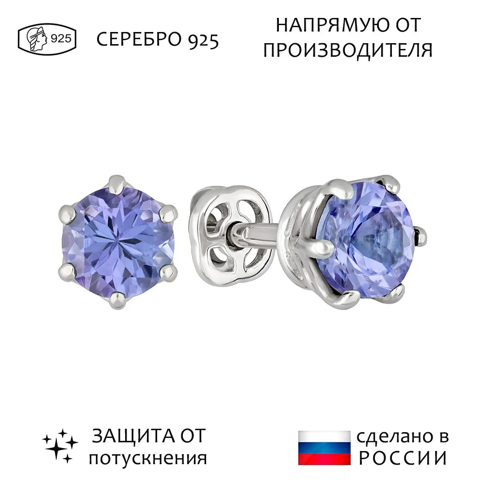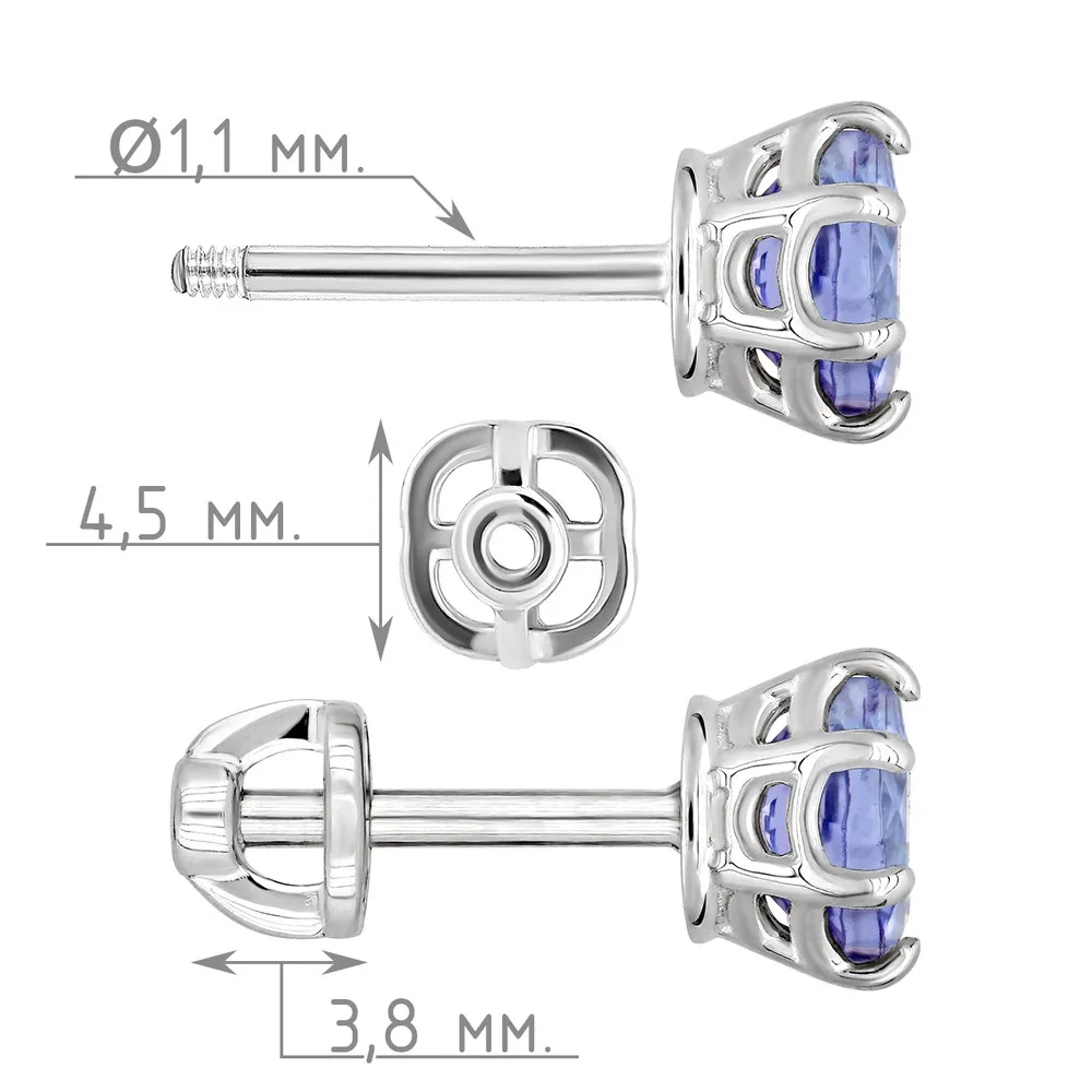 Серебряные серьги гвоздики (пусеты) с натуральным танзанитом (2 класс) 5 мм. / Без покрытия.