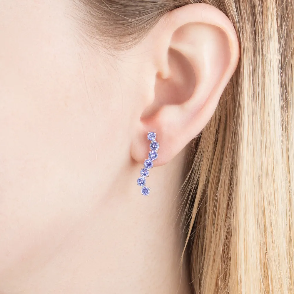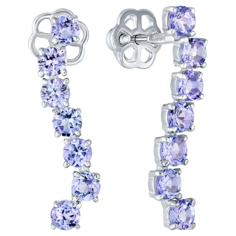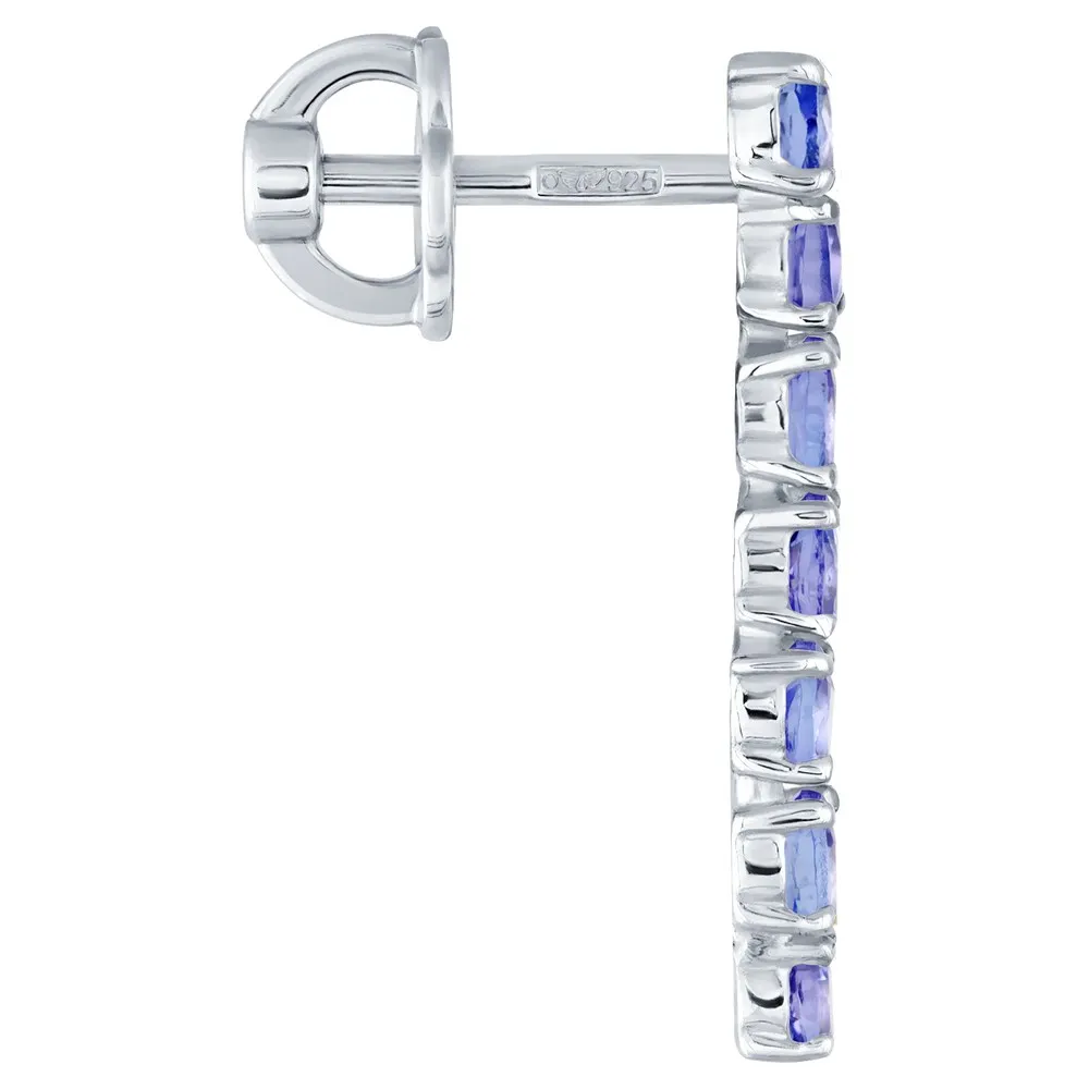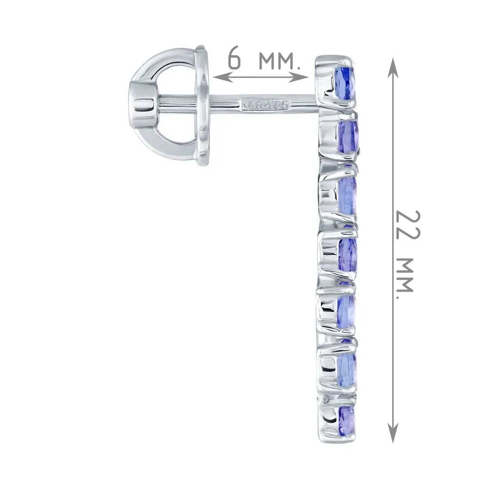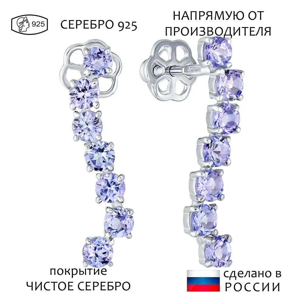 Серебряные серьги с натуральным танзанитом (2 класс) - коллекция Волна / Чистое Серебро.