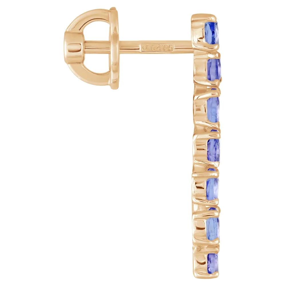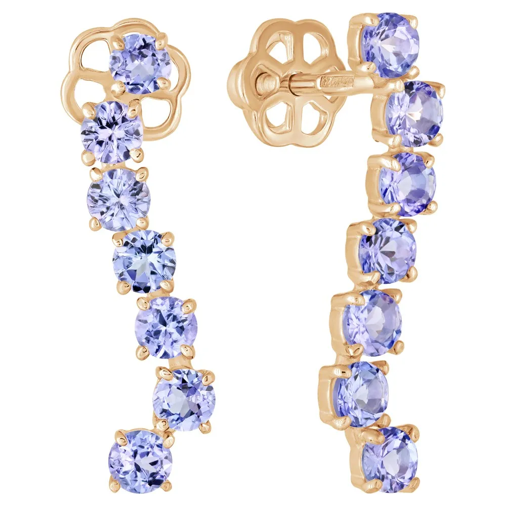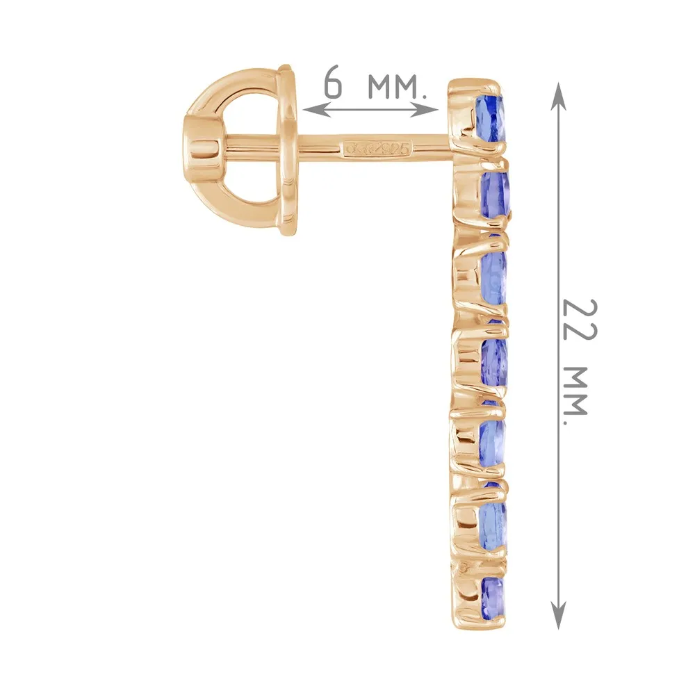 Серебряные серьги с натуральным танзанитом (2 класс) - коллекция Волна / Розовое Золото.