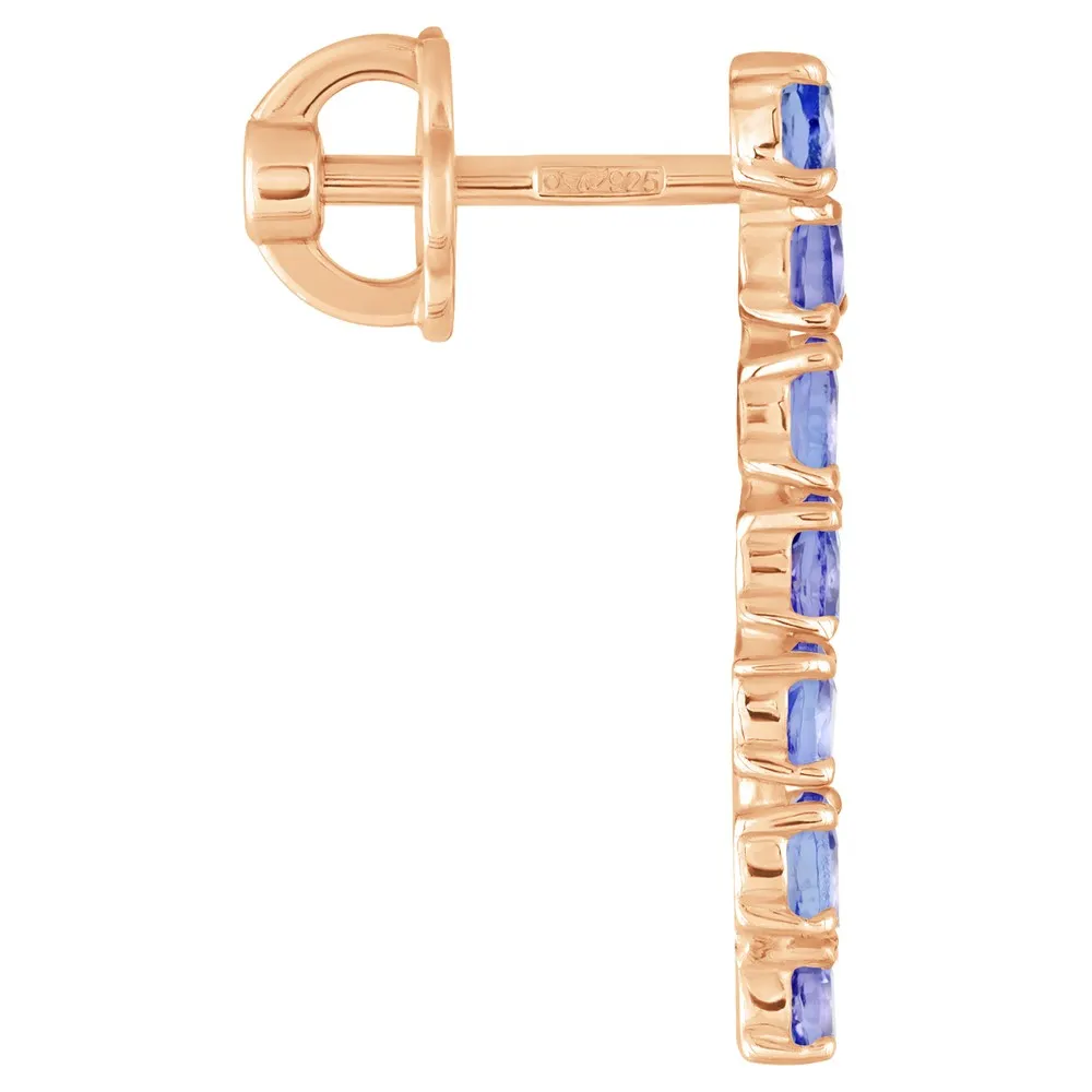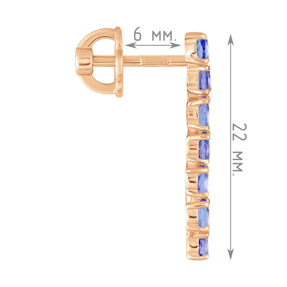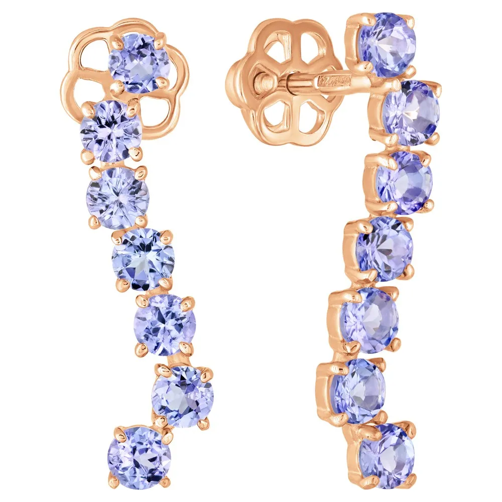 Серебряные серьги с натуральным танзанитом (2 класс) - коллекция Волна / Красное золото.
