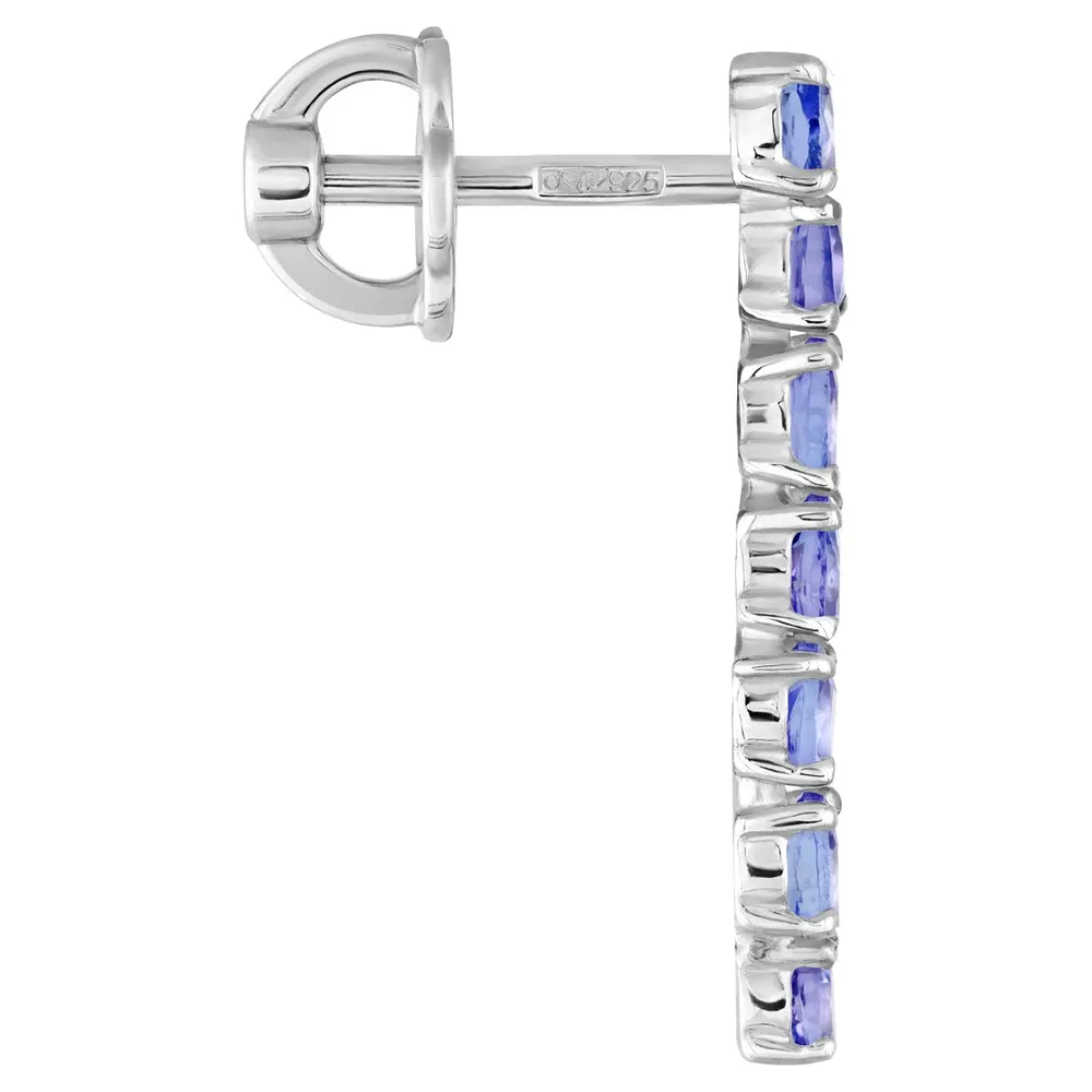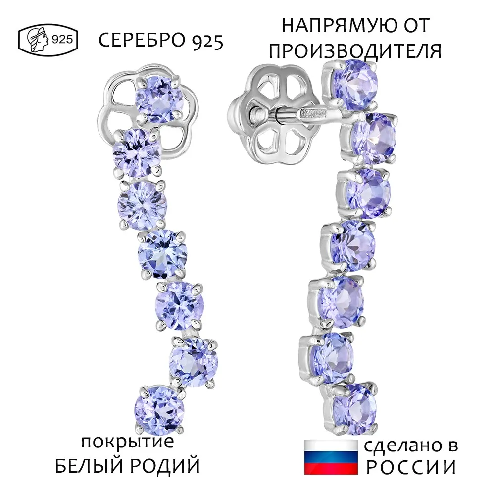 Серебряные серьги с натуральным танзанитом (2 класс) - коллекция Волна / Белый Родий.