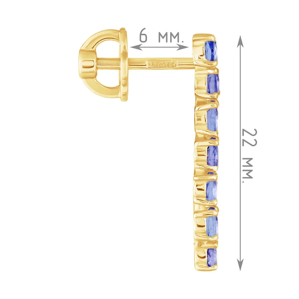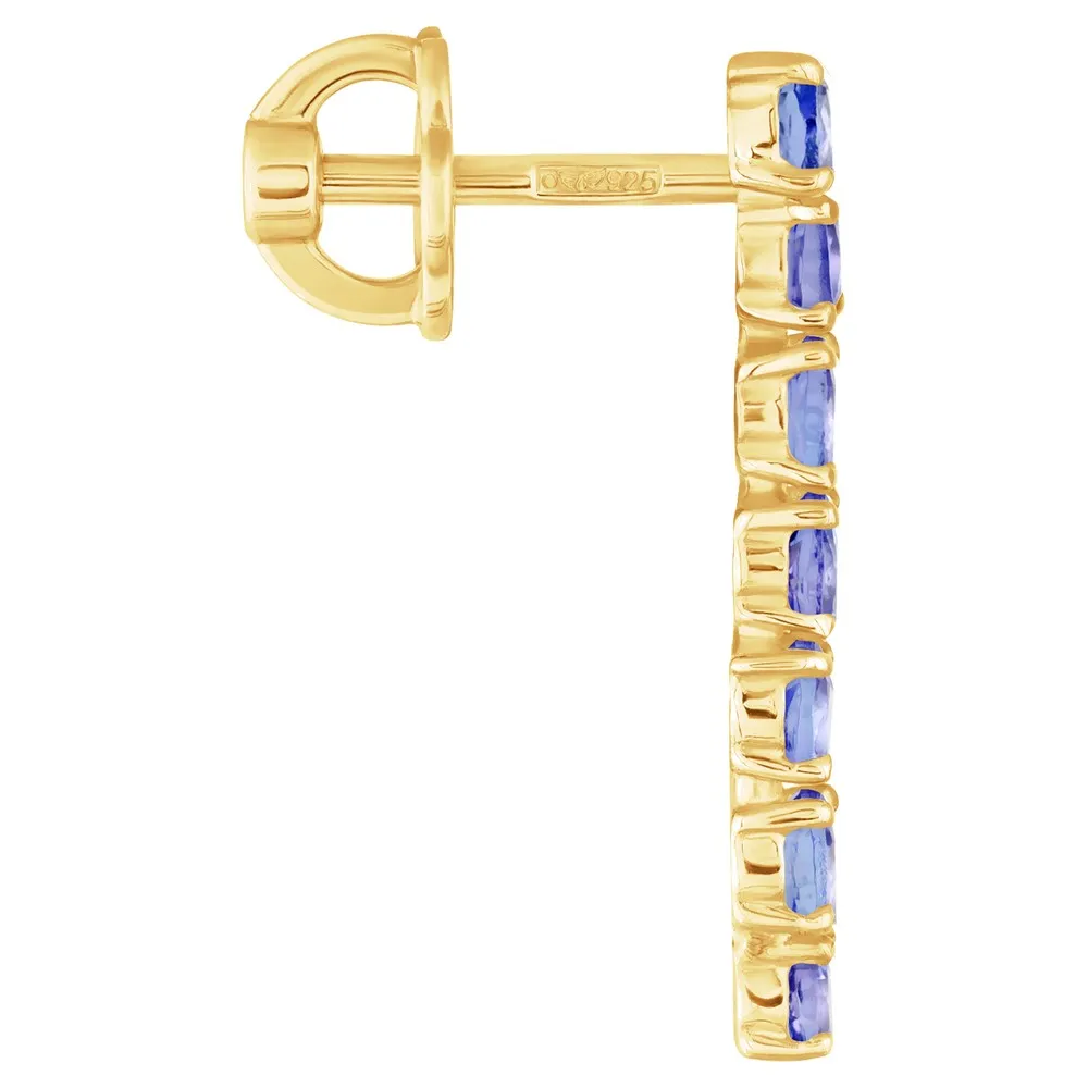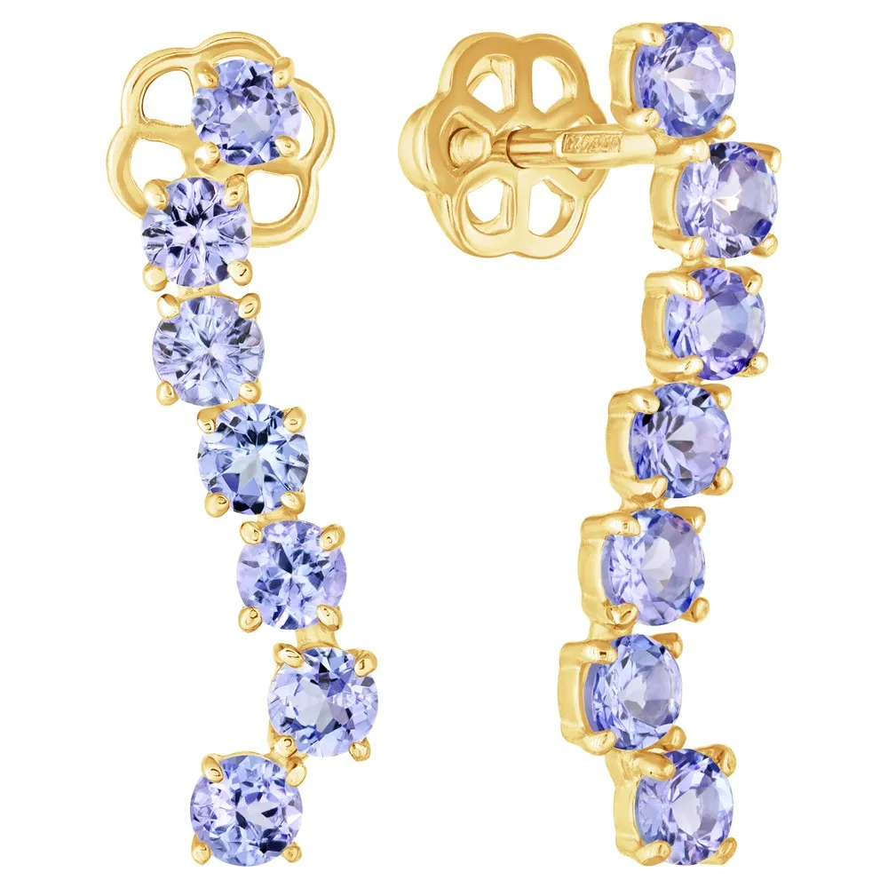Серебряные серьги с натуральным танзанитом (2 класс) - коллекция Волна / Желтое Золото.