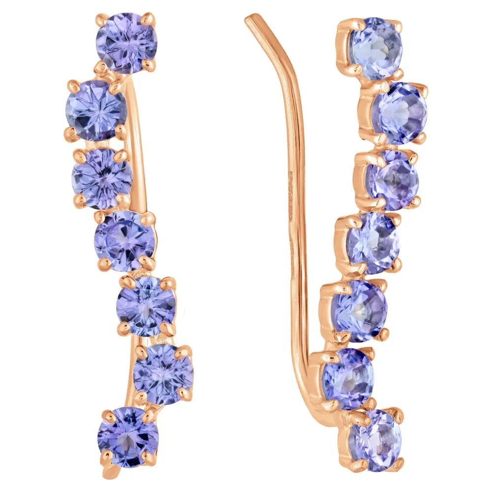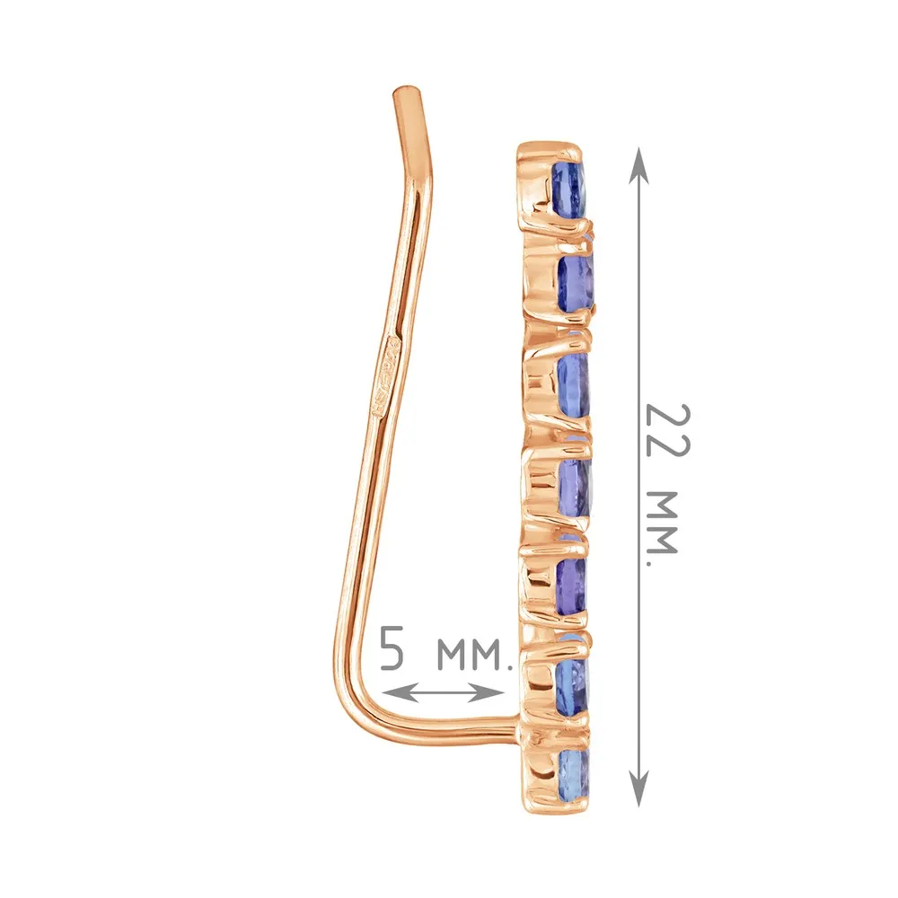 Серебряные серьги каффы с натуральным танзанитом (2 класс) - коллекция Волна / Красное золото.