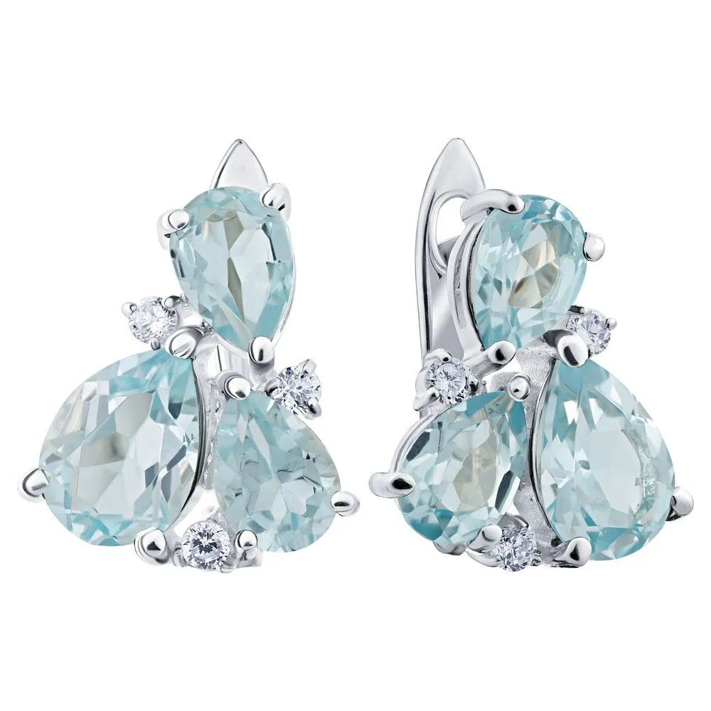 Серебряные серьги Капель с натуральным голубым топазом, покрытие Чистое Серебро. Средний вес украшения с камнями 5,62 гр. Месторождение(я) камней: Топаз (Ильменские горы, Россия). Топаз (Натуральный) груша: 6*9 мм., средний вес 1,60 карат. Топаз (Натуральный) груша: 5*7 мм., средний вес 0,80 карат. Циркон белый (Натуральный) круг: 2 мм., средний вес 0,05 карат. Размер лицевой части: 13*15 мм. Все изделия собственного производства и имеют гарантию 12 месяцев. Арт. 6685AG . Топаз – камень, который отличаются особенным блеском и многообразной гаммой. Сверхтвёрдый и сверхпрочный, он наделен и лечебными, и магическими свойствами. Считалось, что амулет из топаза способен благоприятно повлиять на зачатие, потому часто дарился бездетным парам. Это камень дружбы и благоразумия, радости, оптимизма и надежды.