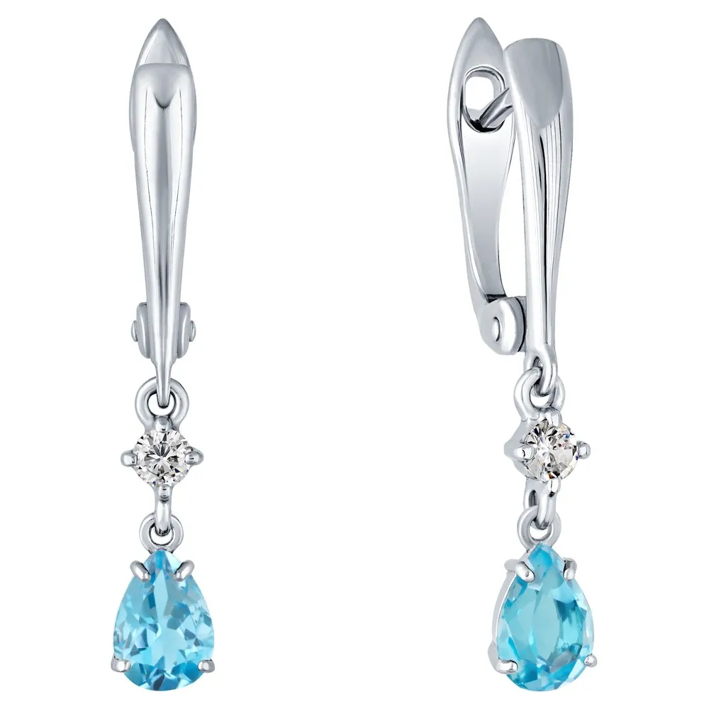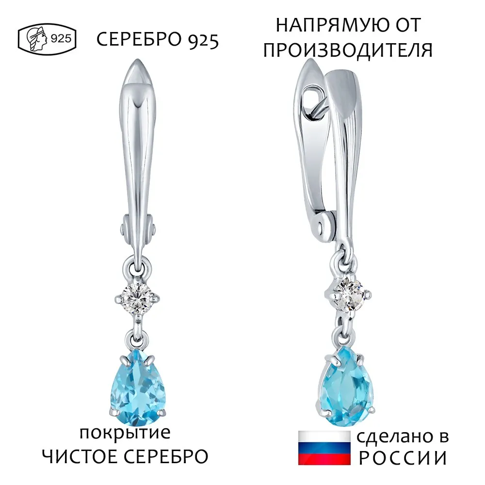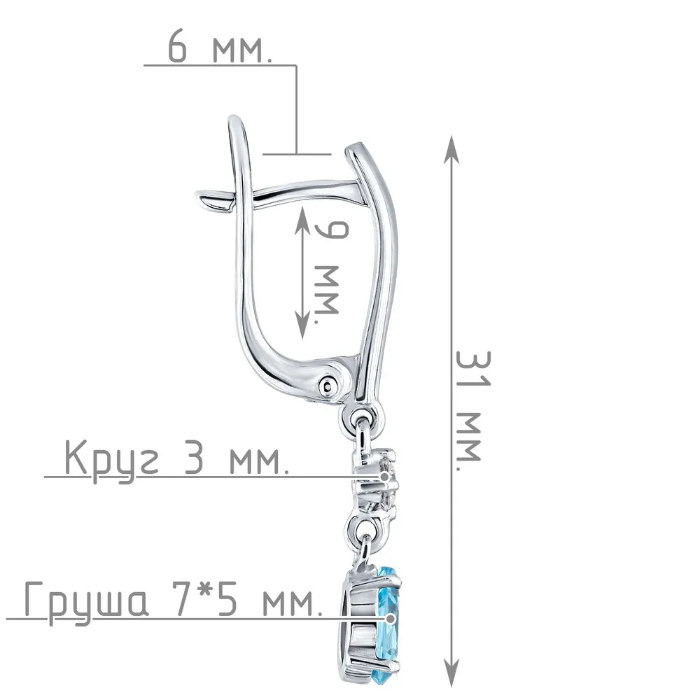 Серебряные серьги с натуральным голубым топазом (Swiss) - коллекция Алсу (малая) / Чистое Серебро.