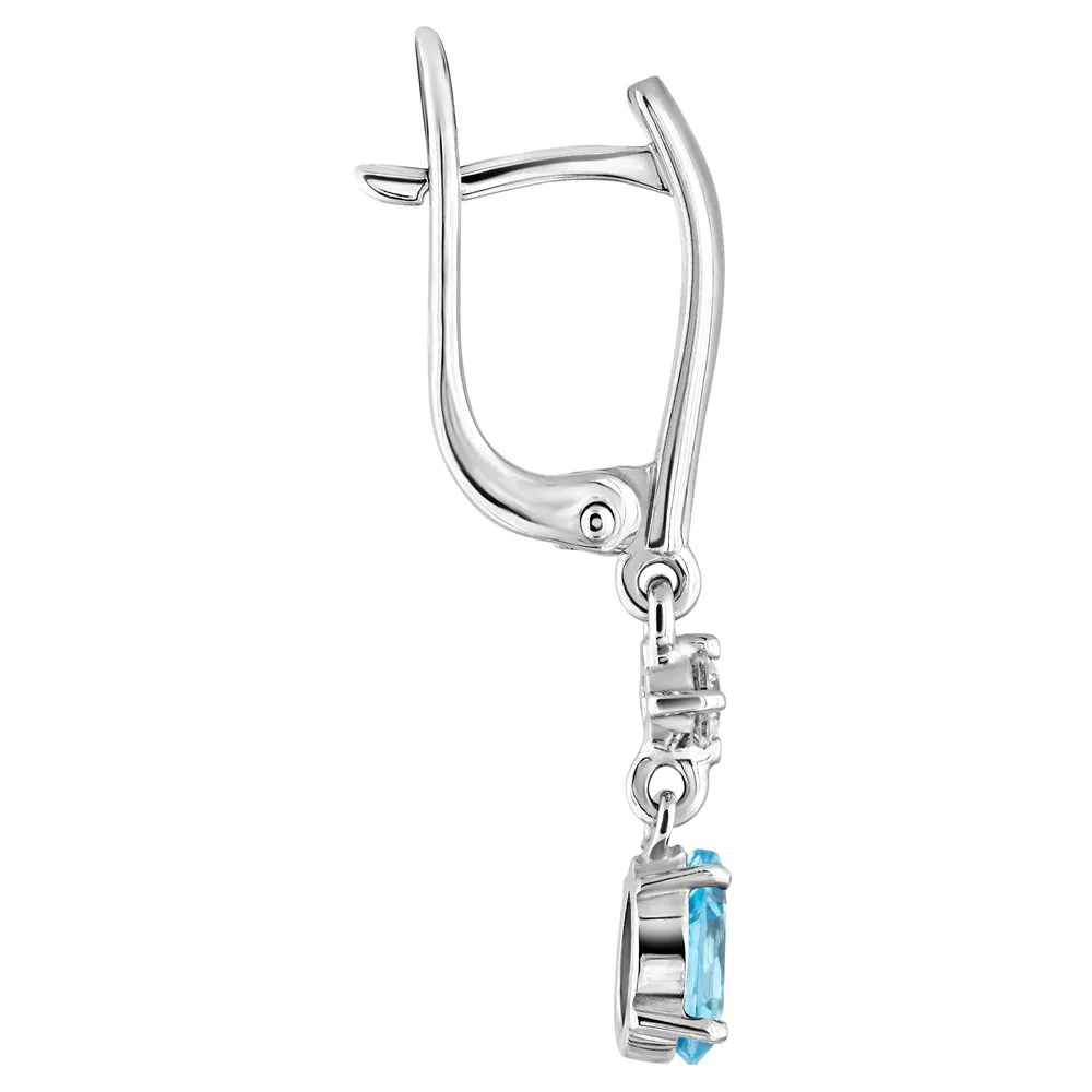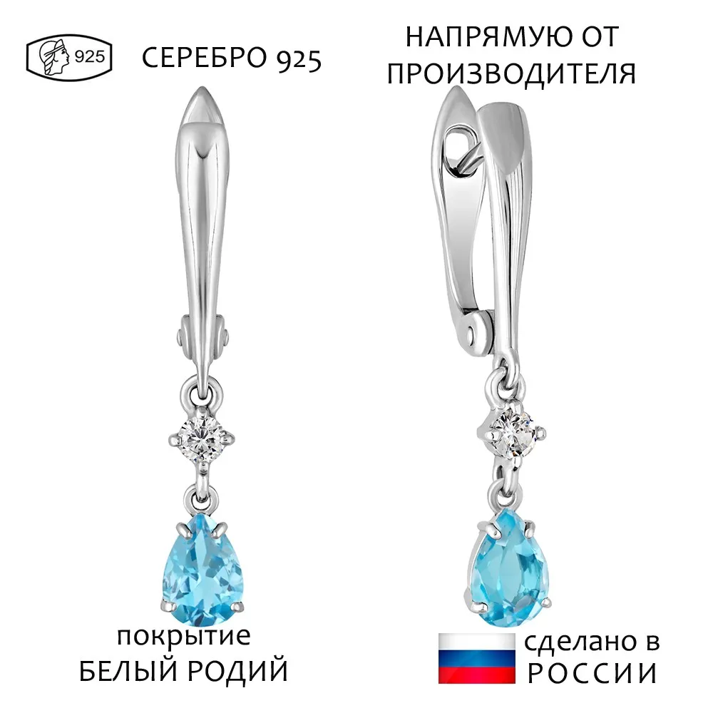 Серебряные серьги с натуральным голубым топазом (Swiss) - коллекция Алсу (малая) / Белый Родий.