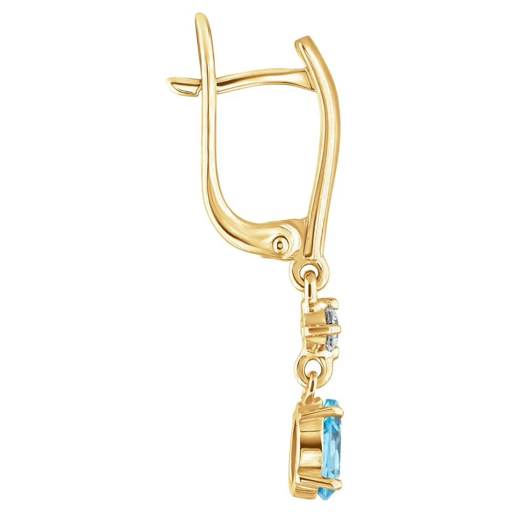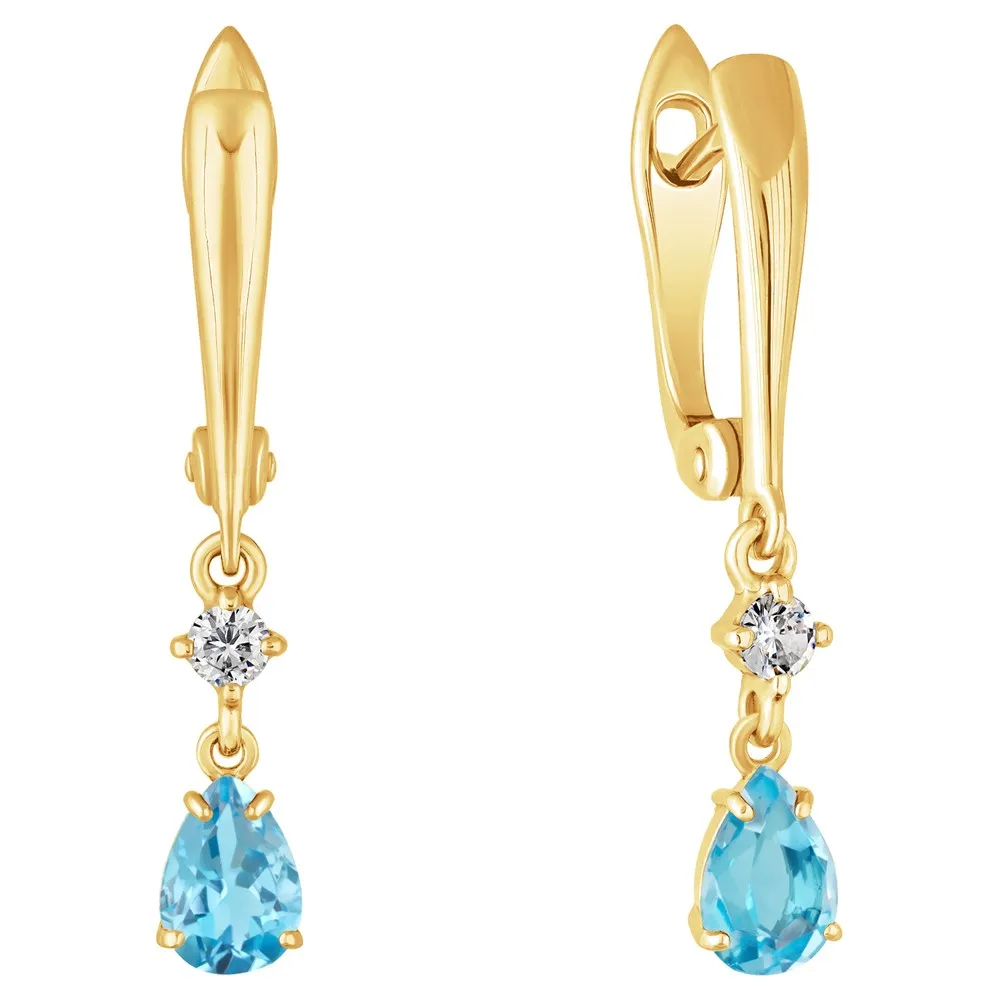 Серебряные серьги с натуральным голубым топазом (Swiss) - коллекция Алсу (малая) / Желтое Золото.