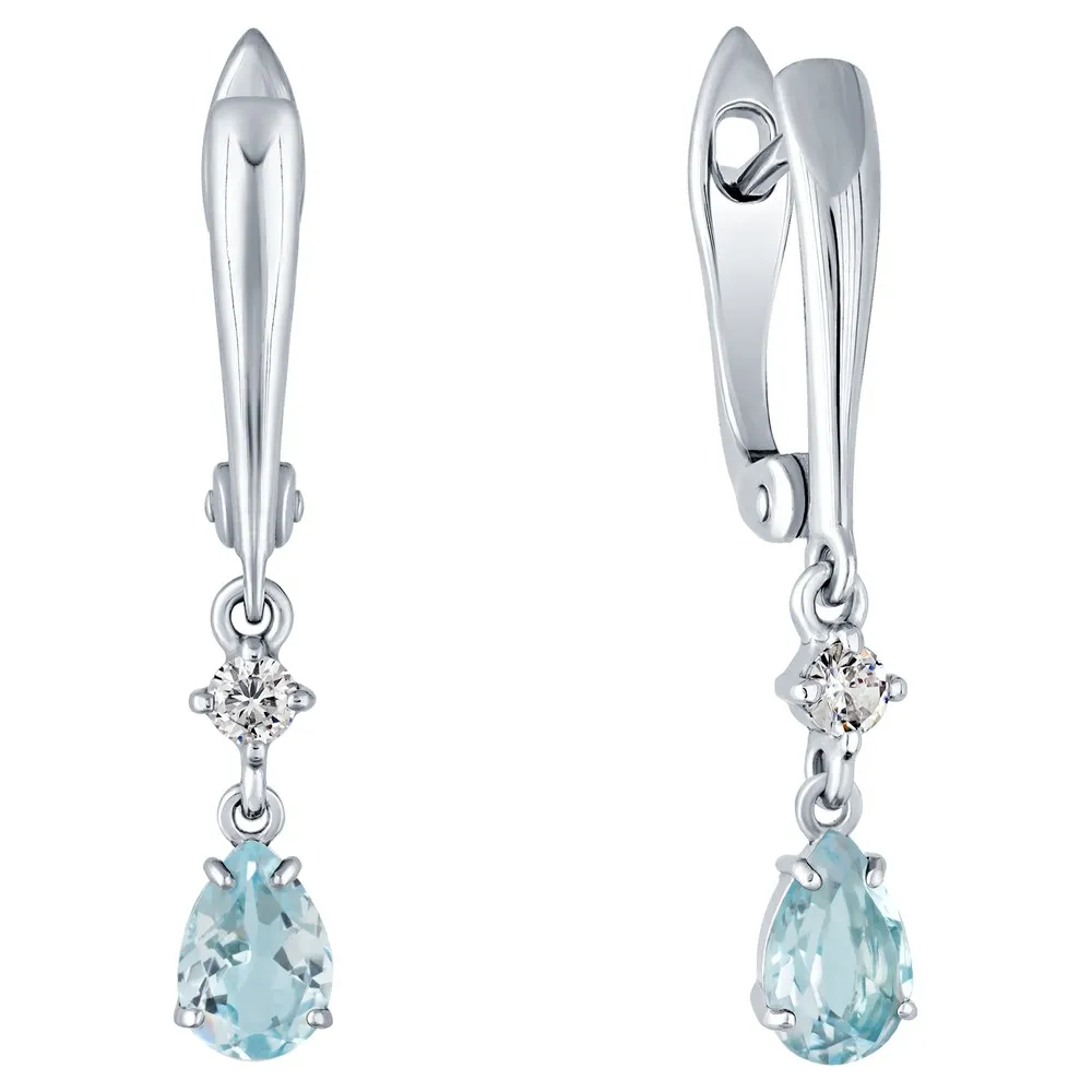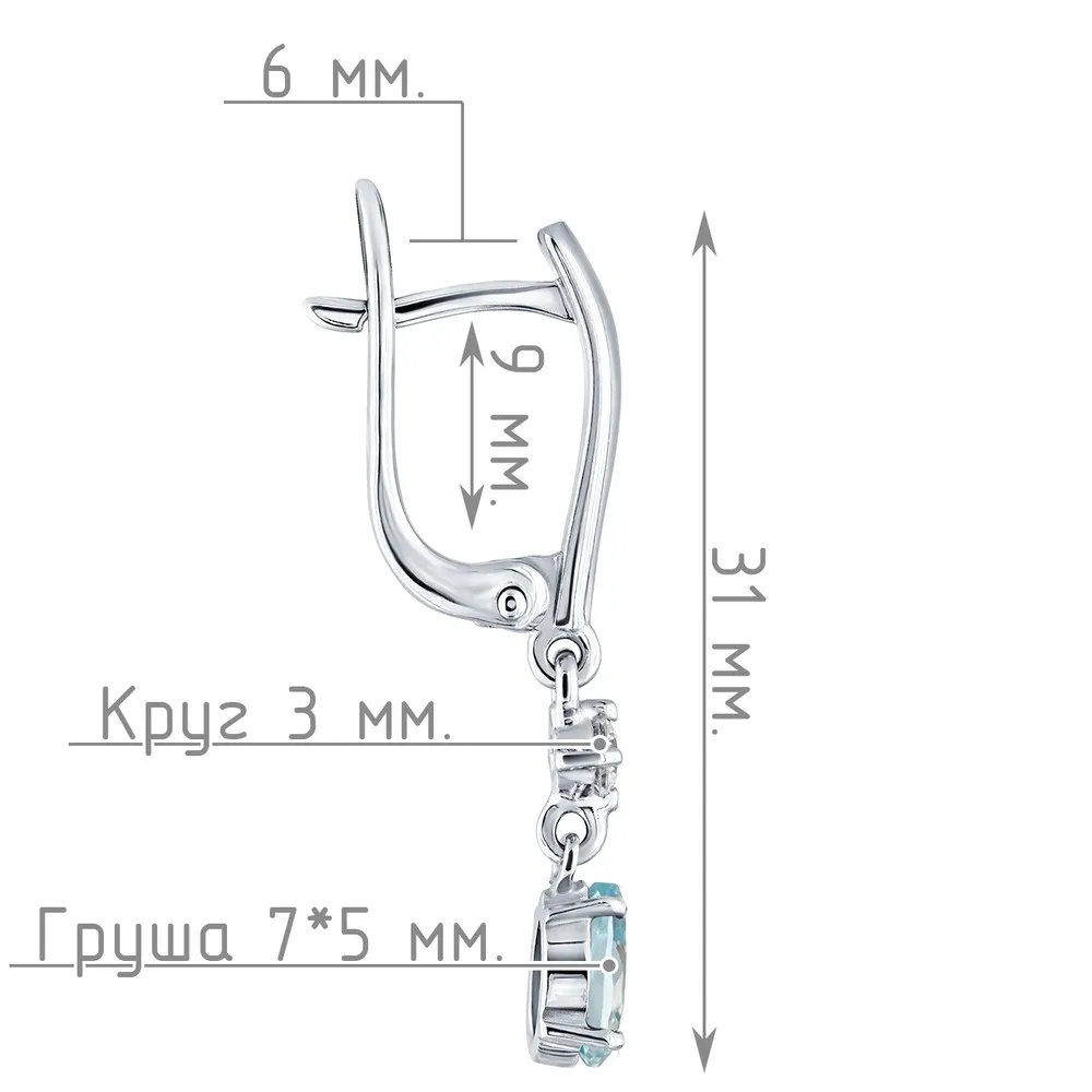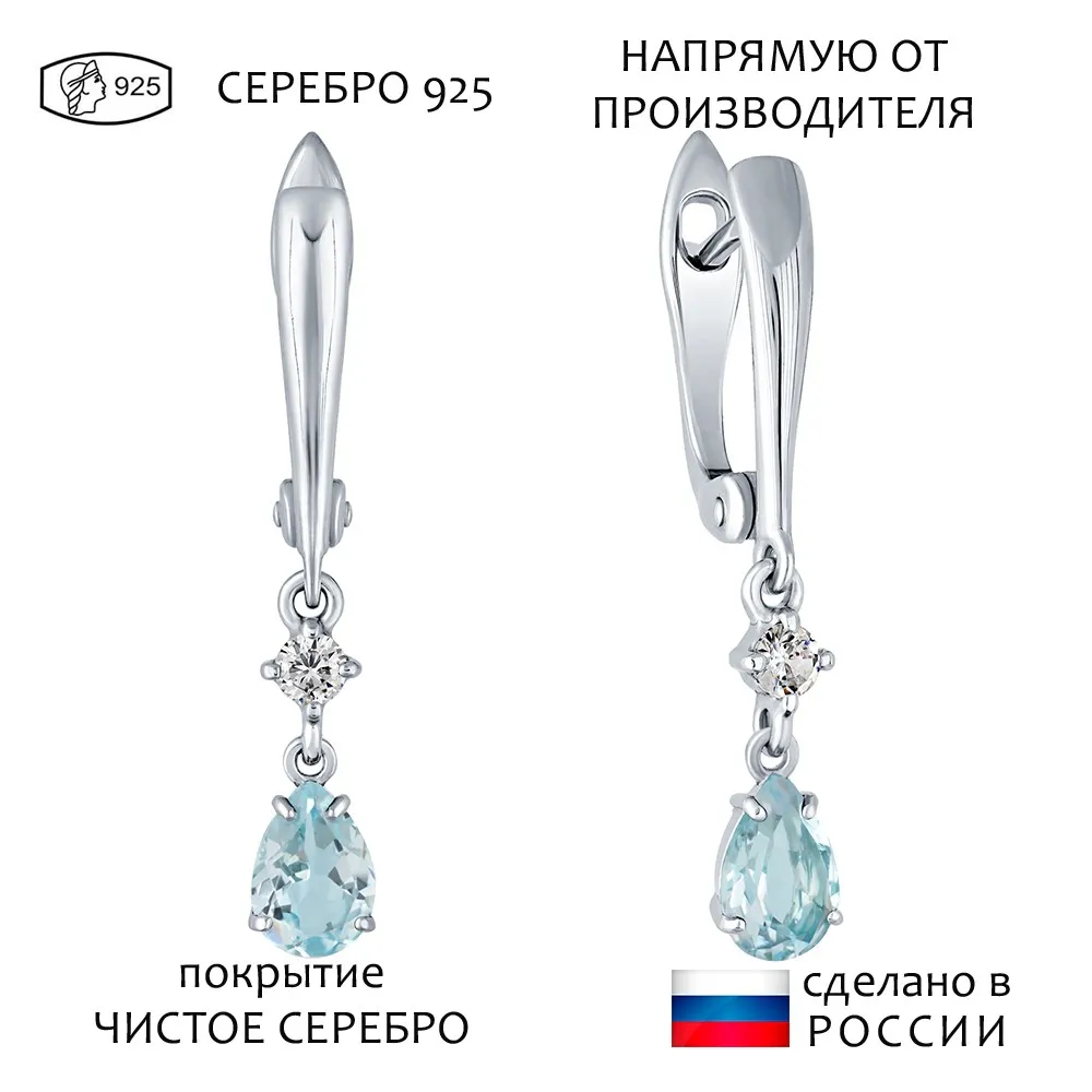 Серебряные серьги с натуральным голубым топазом (Sky) - коллекция Алсу (малая) / Чистое Серебро.