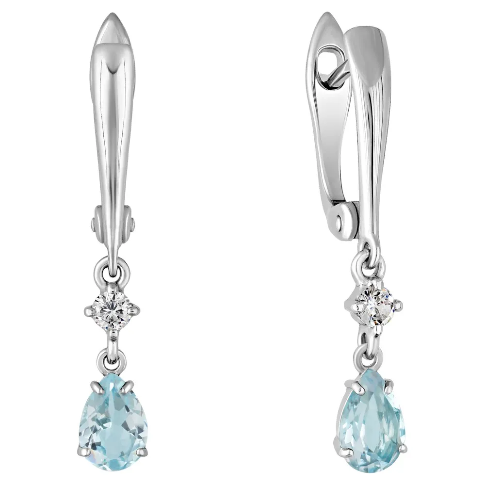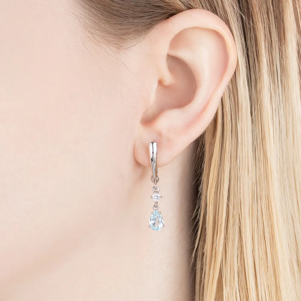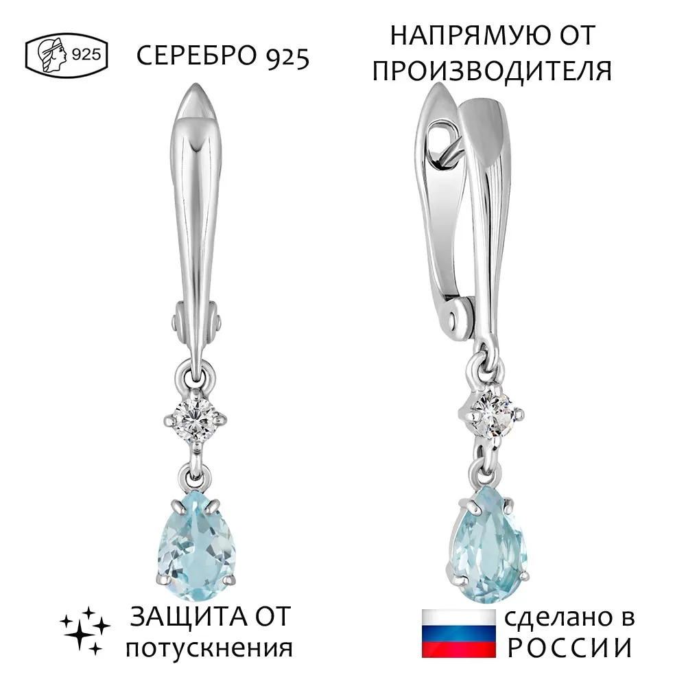 Серебряные серьги с натуральным голубым топазом (Sky) - коллекция Алсу (малая) / Без покрытия.