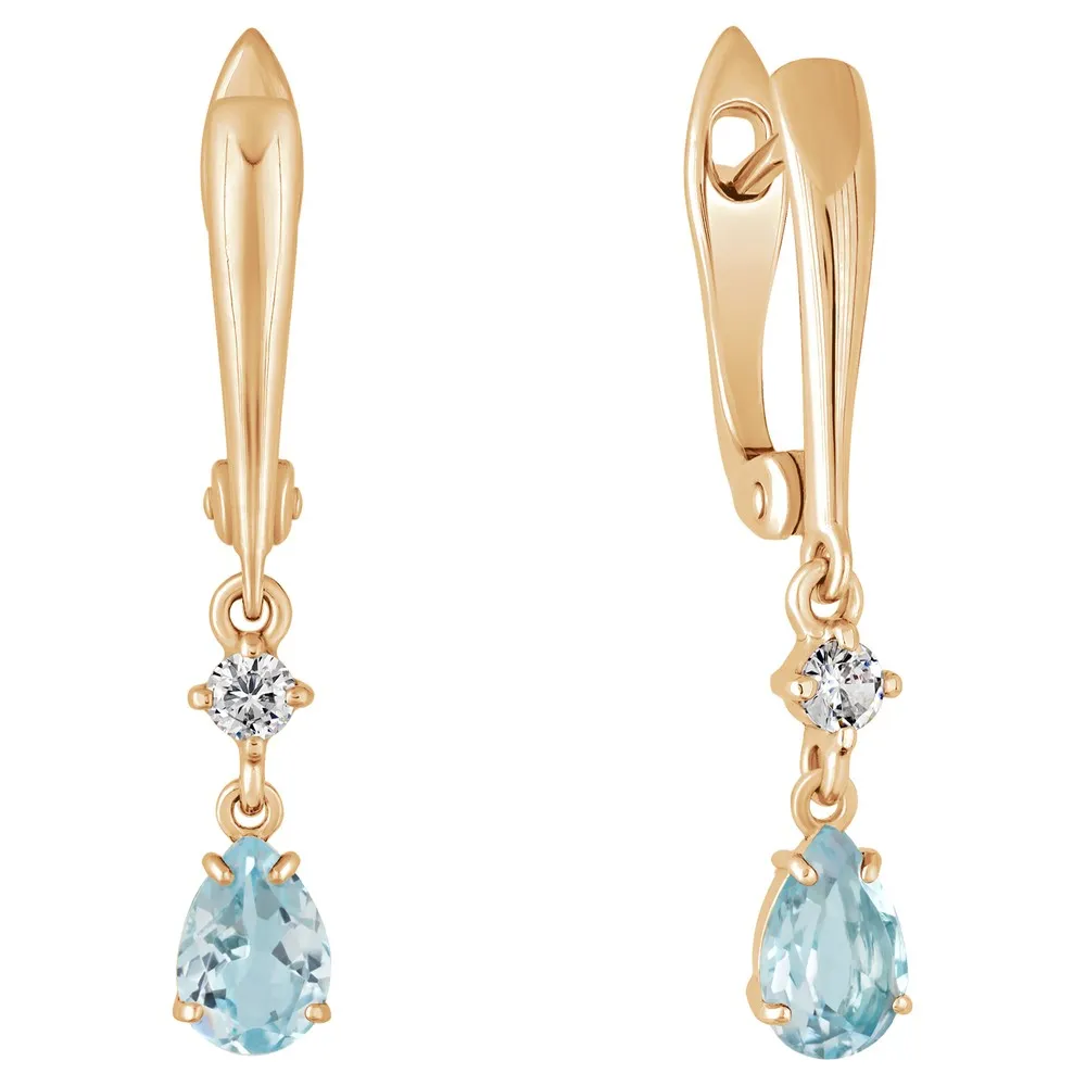 Серебряные серьги с натуральным голубым топазом (Sky) - коллекция Алсу (малая) / Розовое Золото.