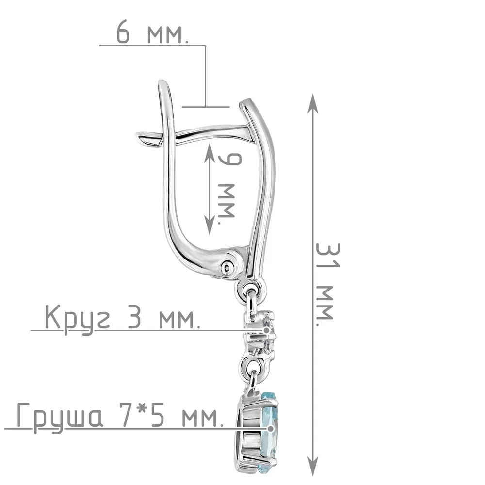 Серебряные серьги с натуральным голубым топазом (Sky) - коллекция Алсу (малая) / Белый Родий.