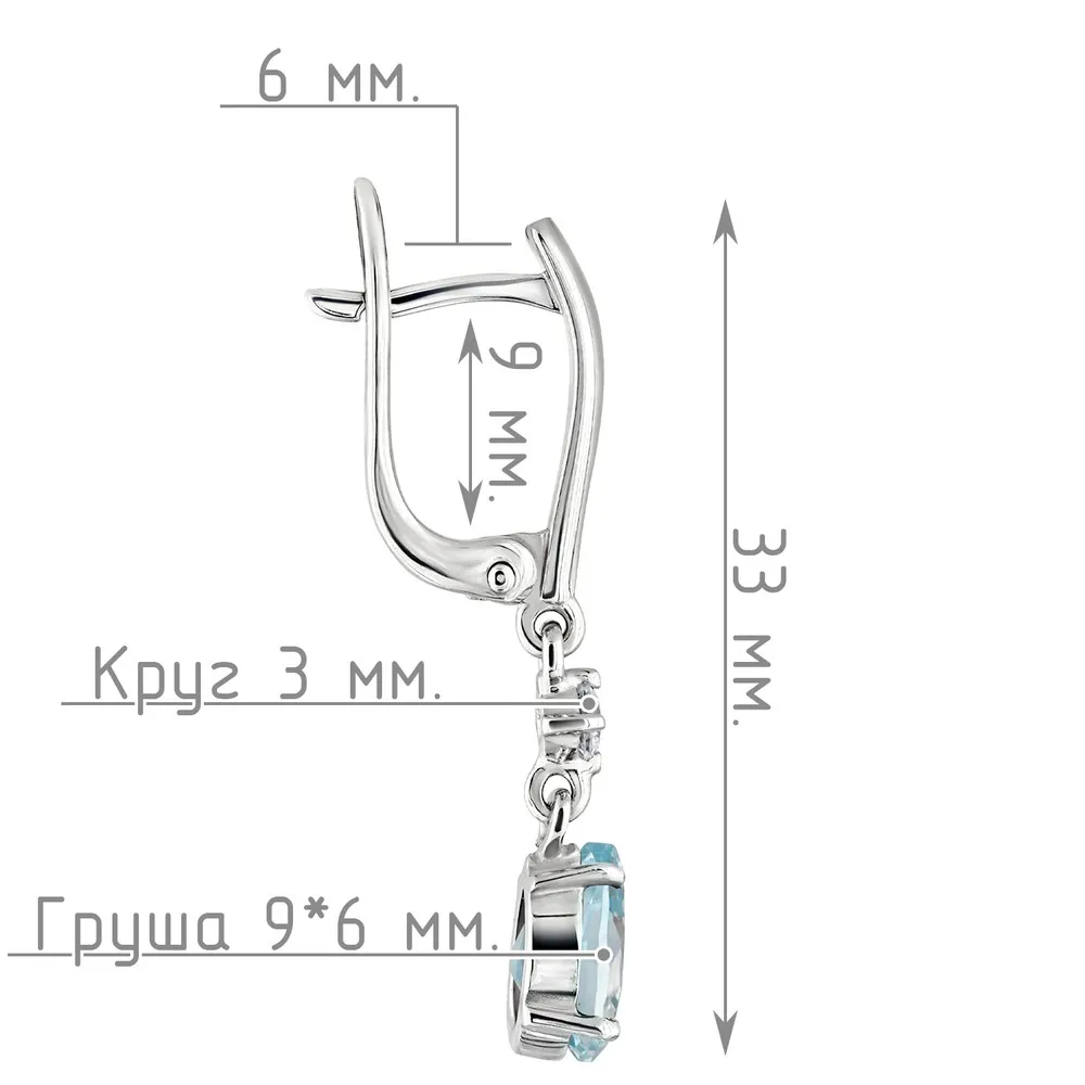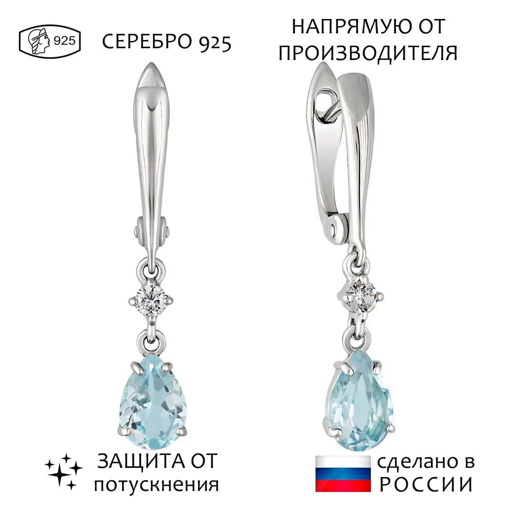 Серебряные серьги с натуральным голубым топазом (Sky) - коллекция Алсу (большая) / Без покрытия.