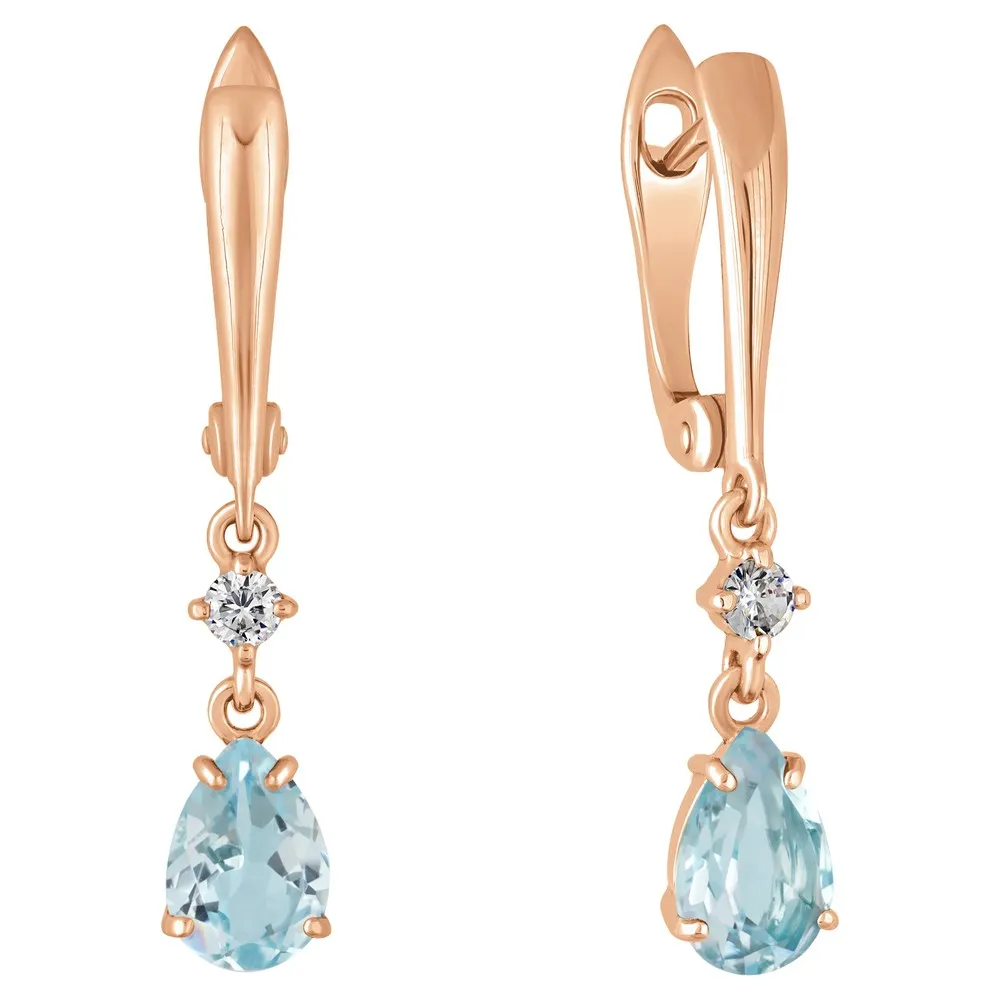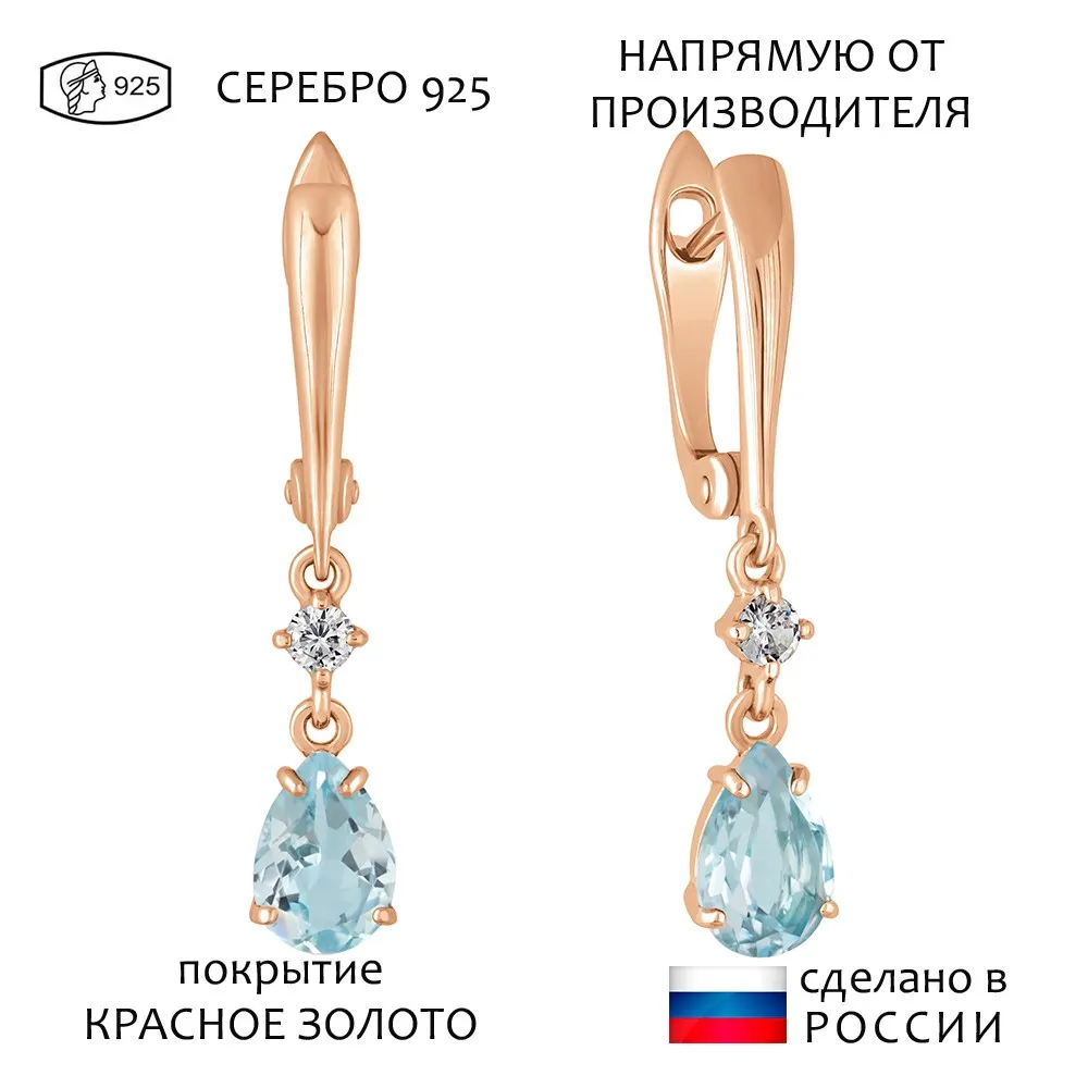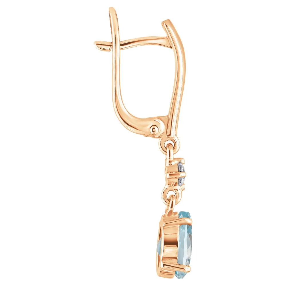 Серебряные серьги с натуральным голубым топазом (Sky) - коллекция Алсу (большая) / Красное золото.