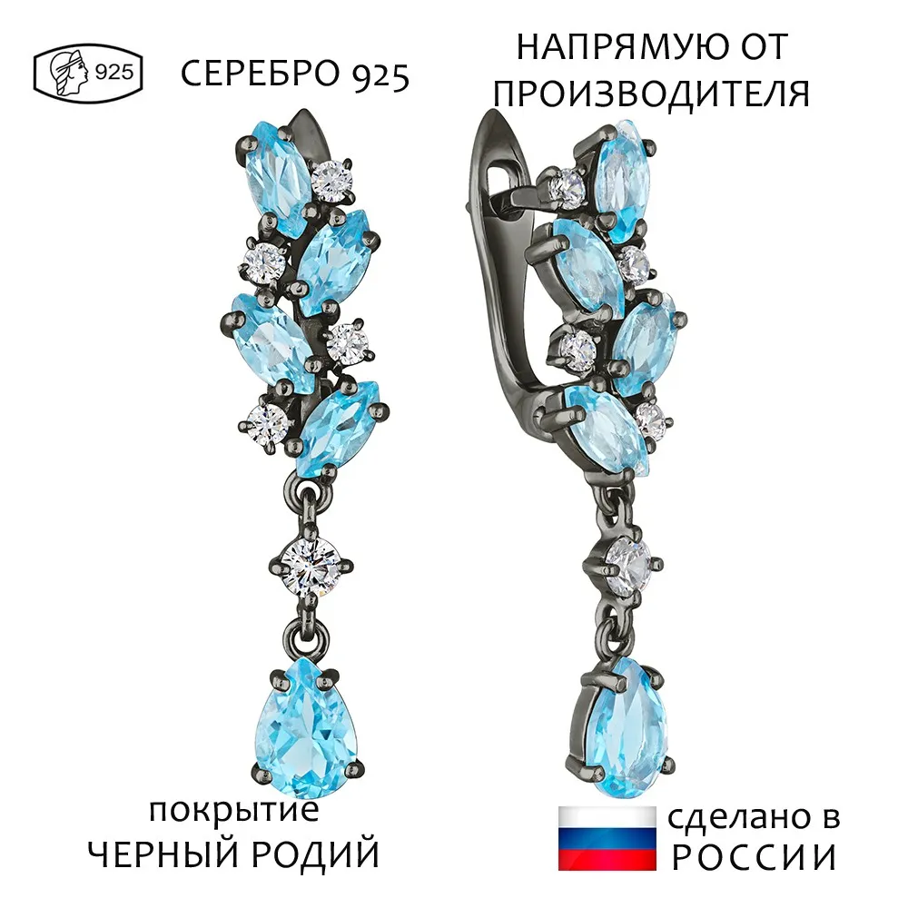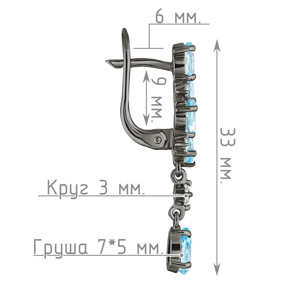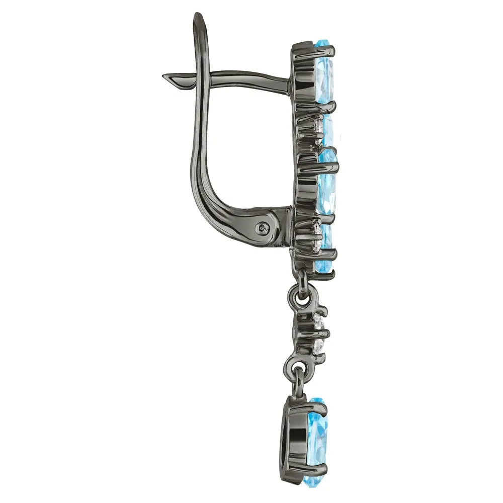 Серебряные серьги с натуральным голубым топазом (Swiss) - коллекция Росинка / Черный Родий.