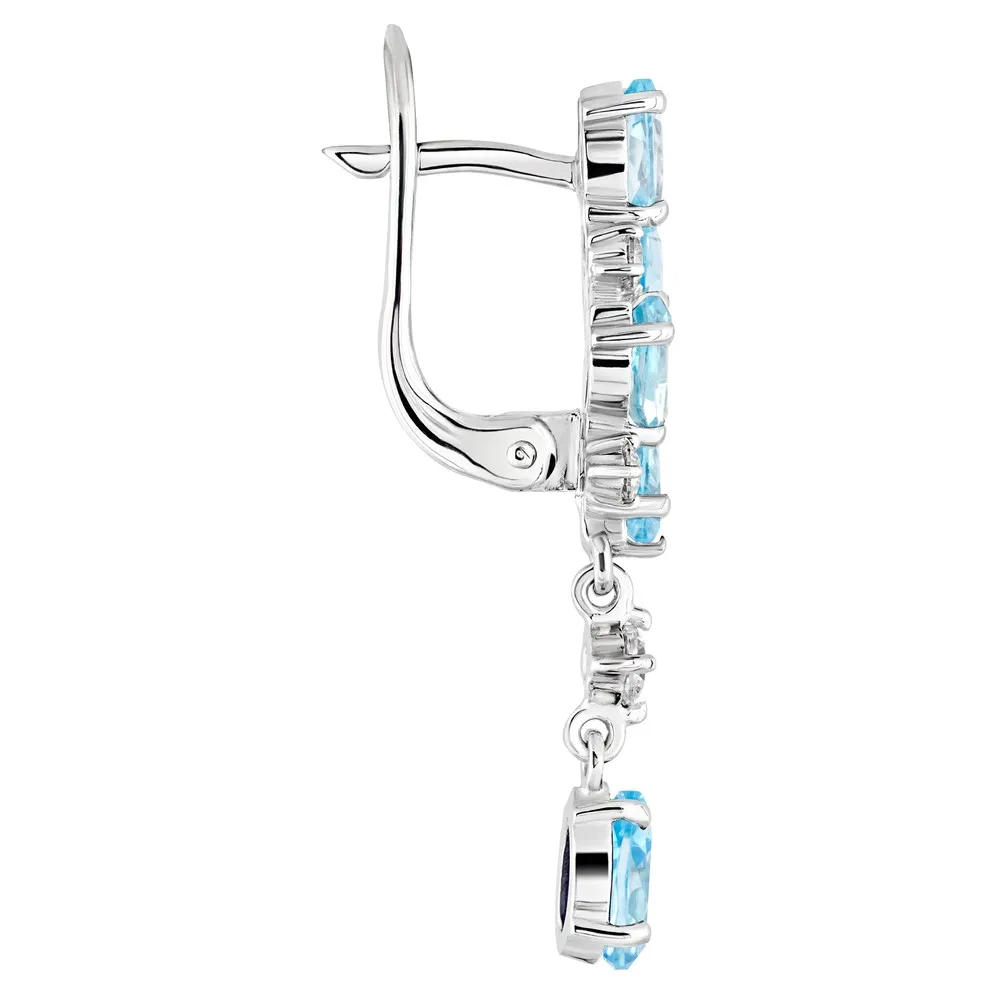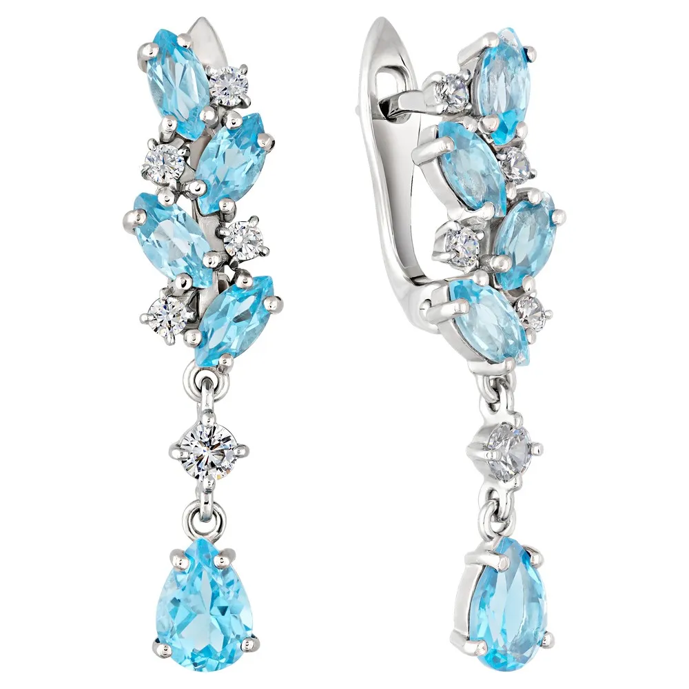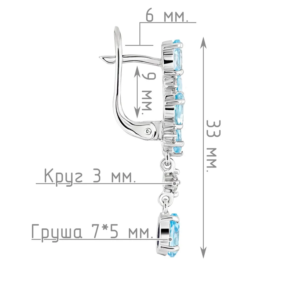 Серебряные серьги с натуральным голубым топазом (Swiss) - коллекция Росинка / Без покрытия.