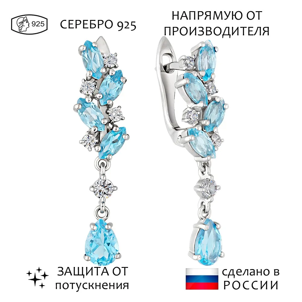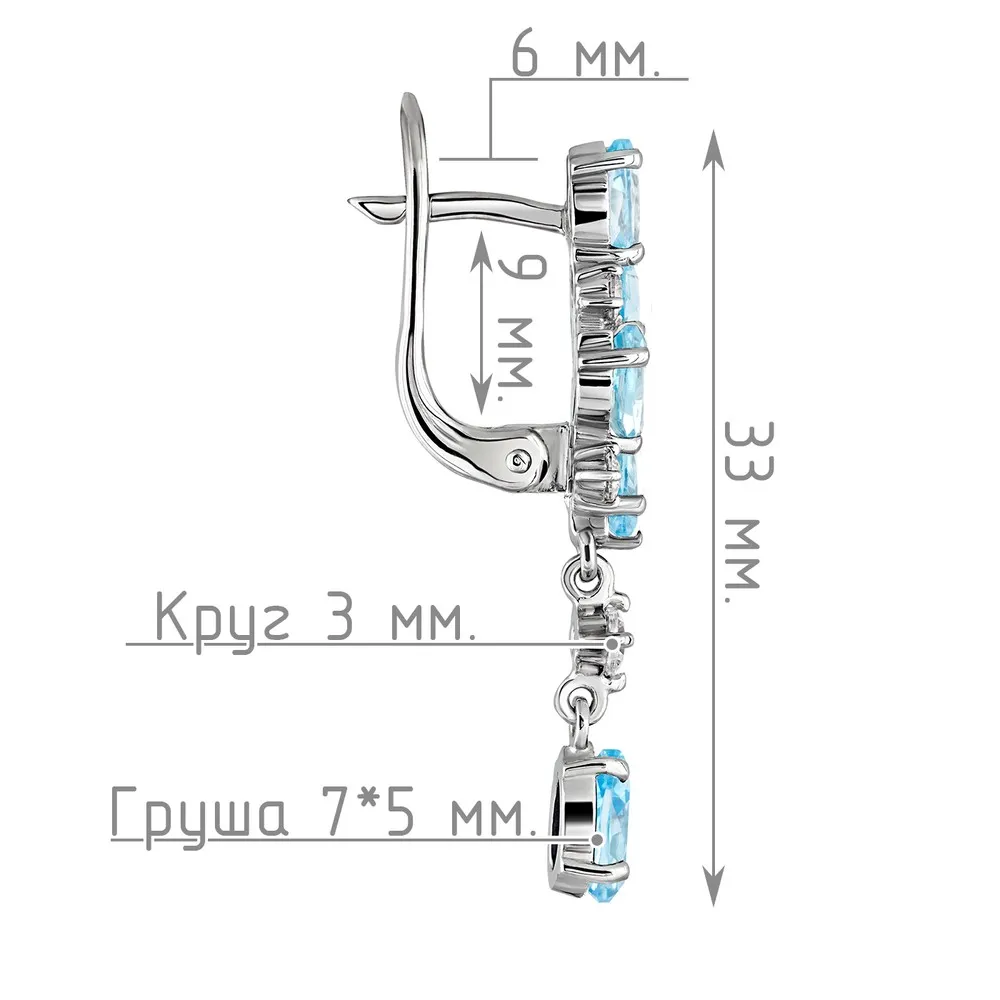 Серебряные серьги с натуральным голубым топазом (Swiss) - коллекция Росинка / Палладий.