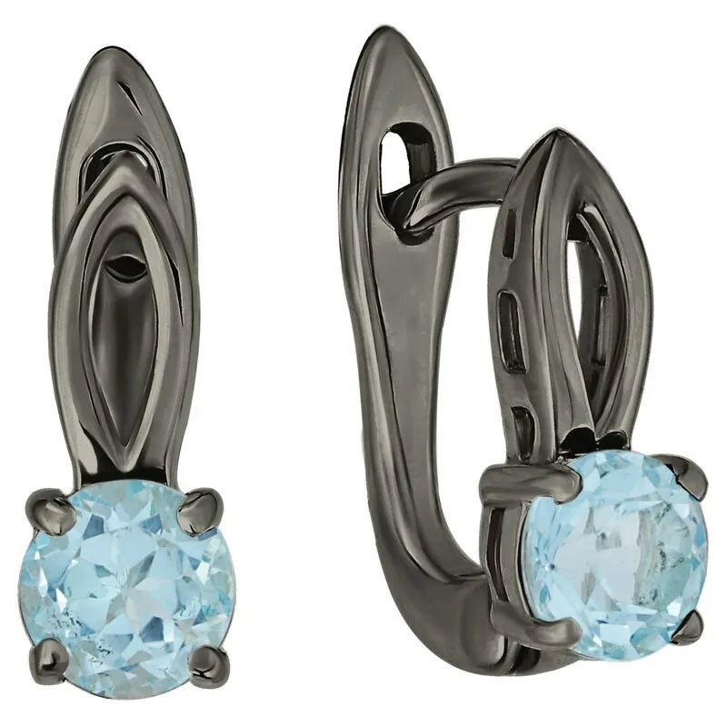 Серебряные серьги с натуральным голубым топазом - коллекция Мона, покрытие Черный Родий. Средний вес украшения с камнем составляет 2.59 гр. Месторождение(я): Голубой топаз (Ильменские горы, Россия).